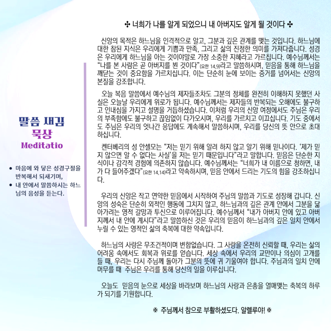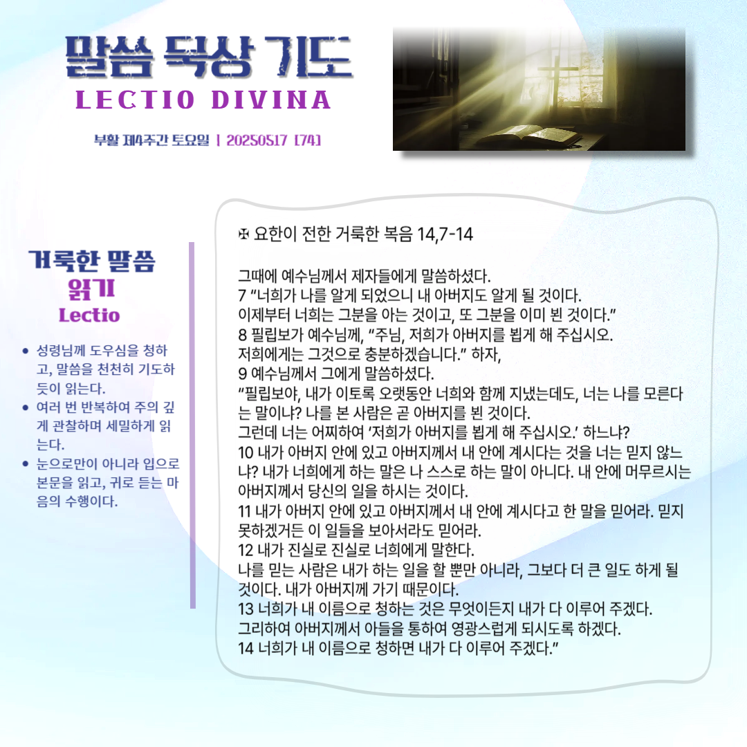말씀묵상기도 LECTIO DIVINA [74] 20250517