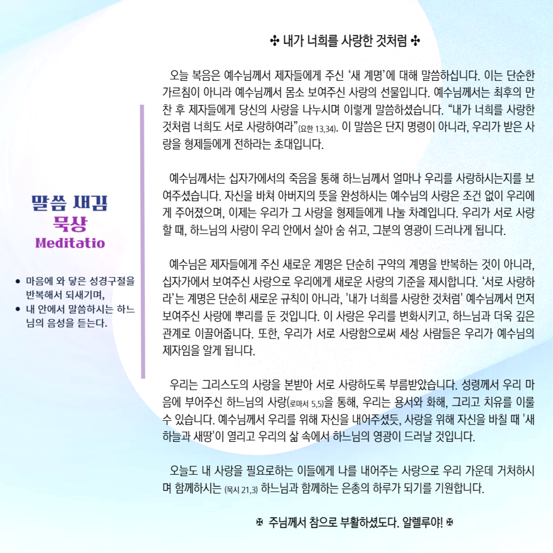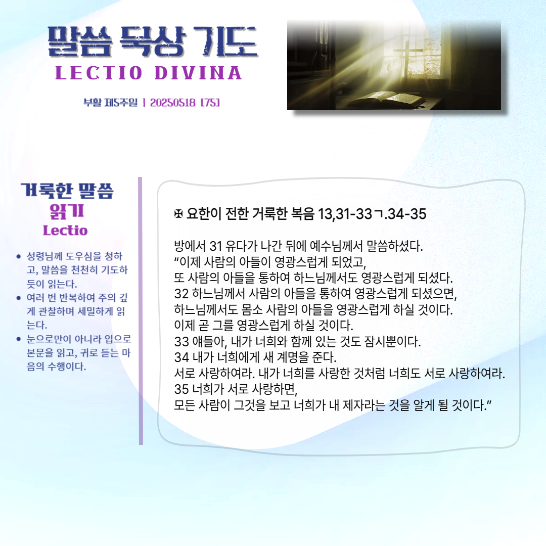 말씀묵상기도 LECTIO DIVINA [75] 20250518 | 부활제5주일