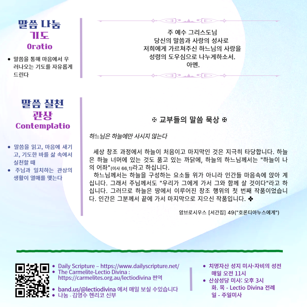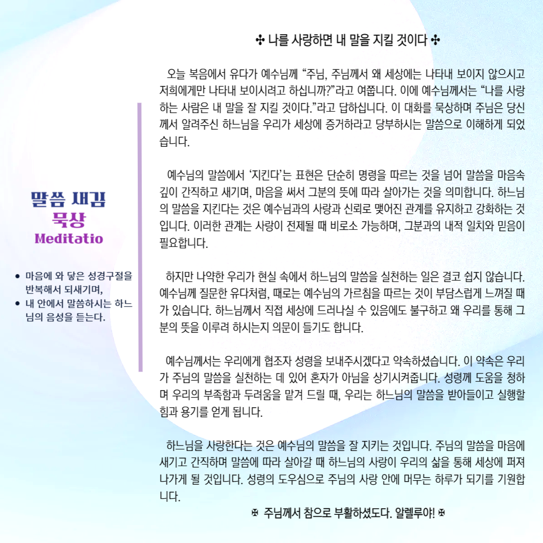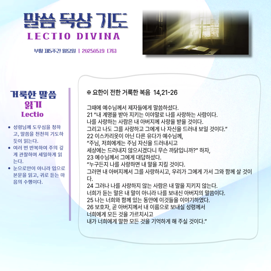 말씀묵상기도 LECTIO DIVINA [76] 20250519 부활5주간 월