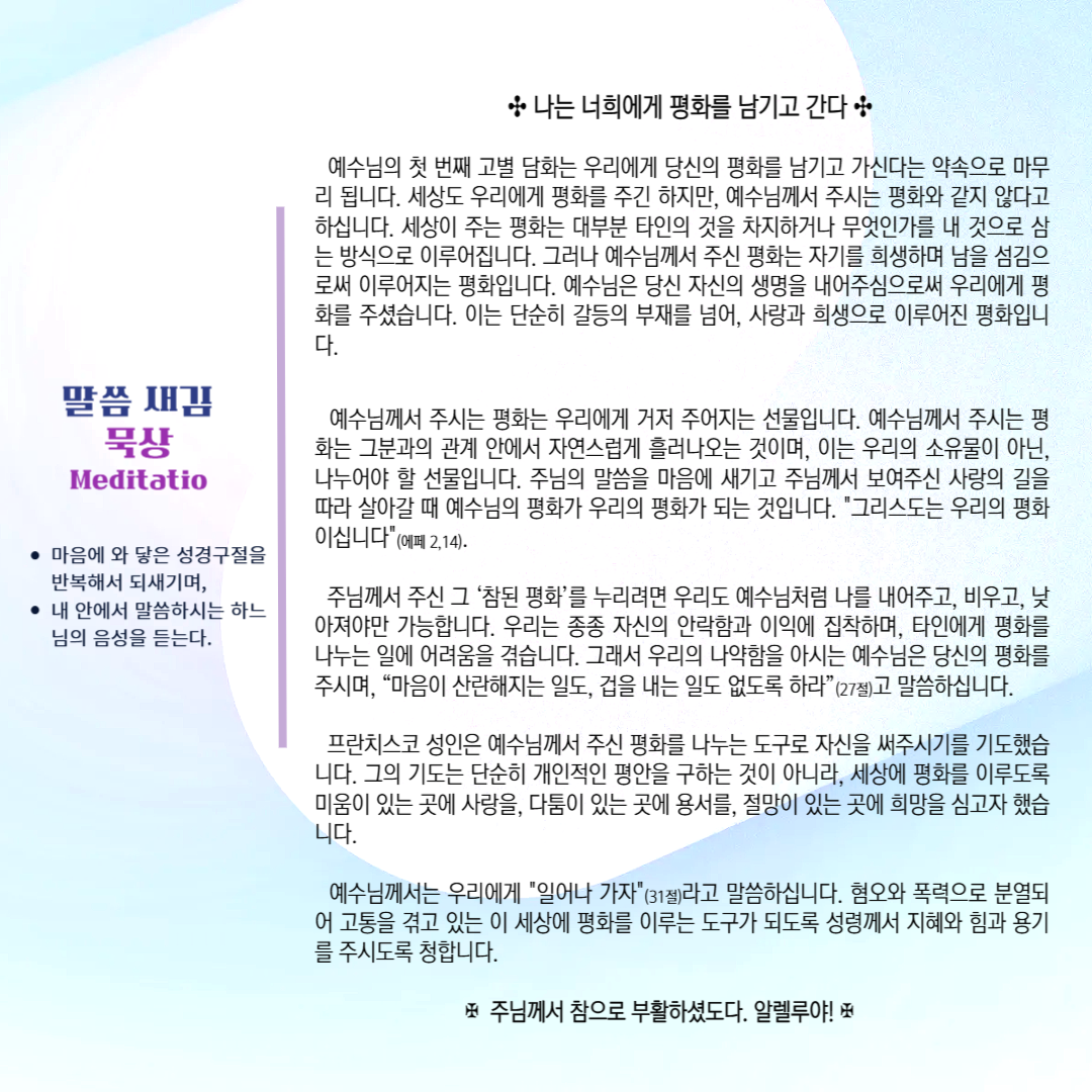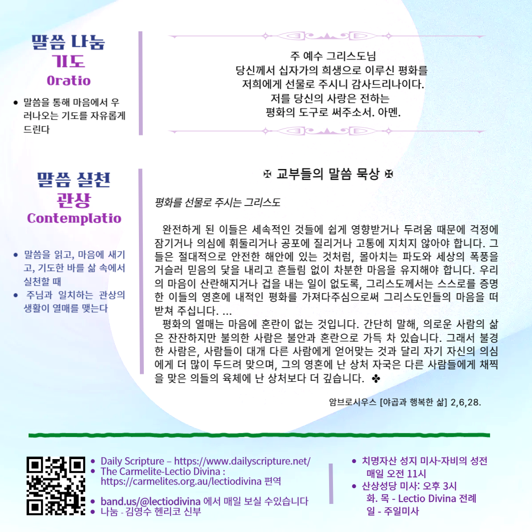 말씀묵상기도 LECTIO DIVINA [77] 20250520 부활5주간 화