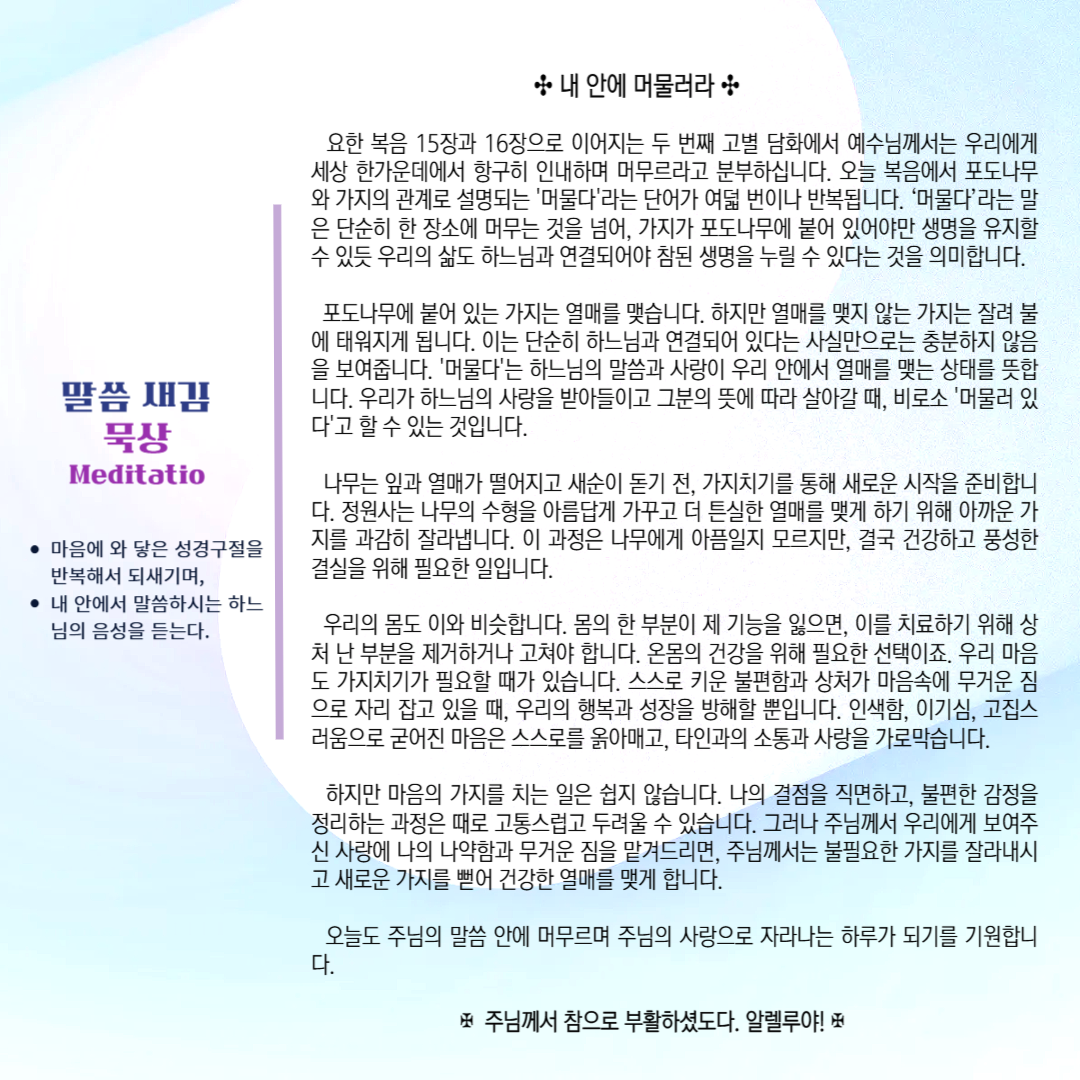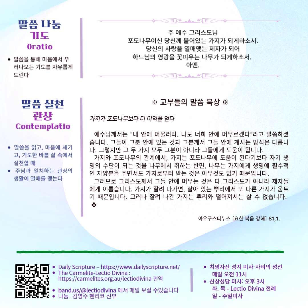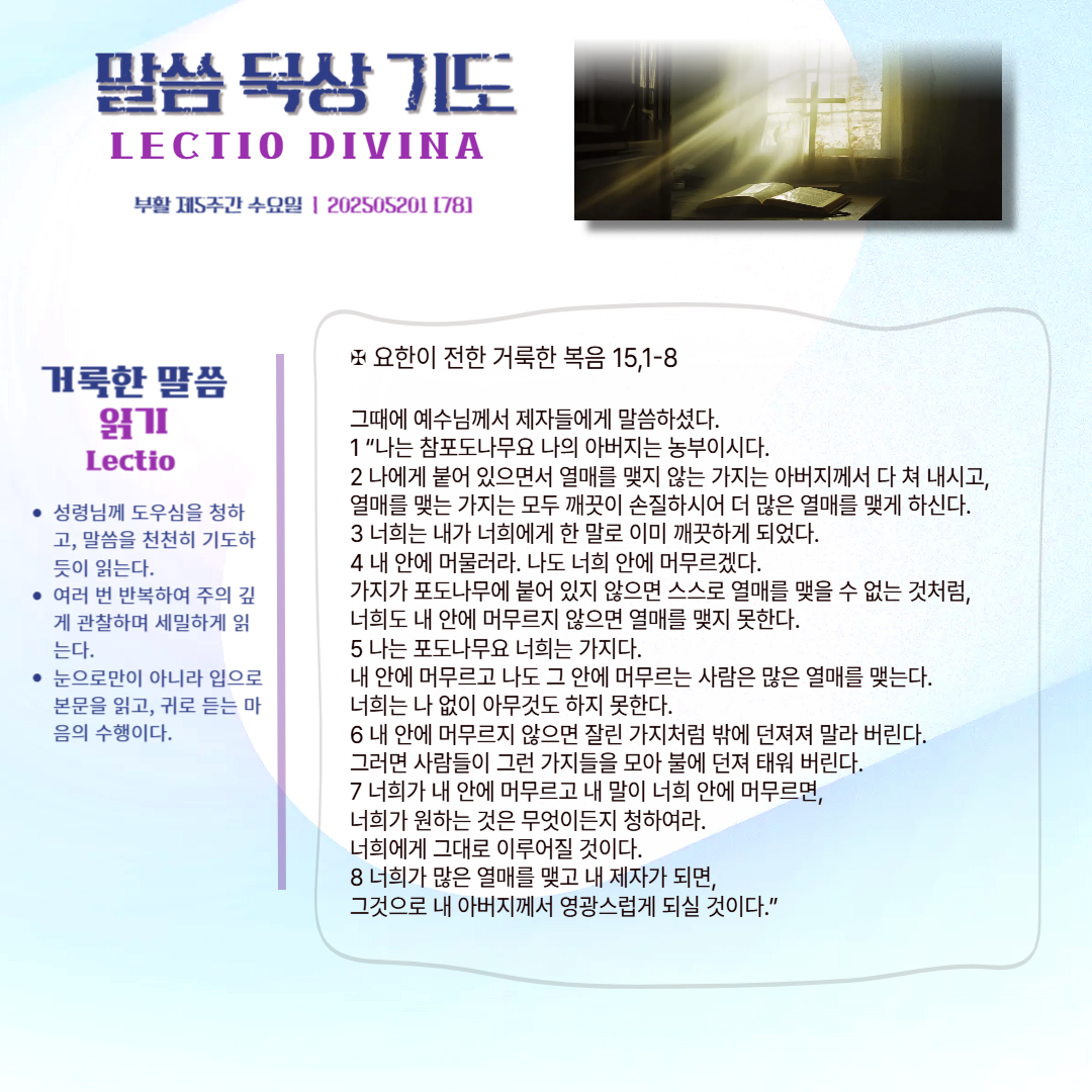 말씀묵상기도 LECTIO DIVINA [78] 20250521 부활5주간 수