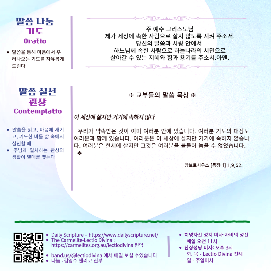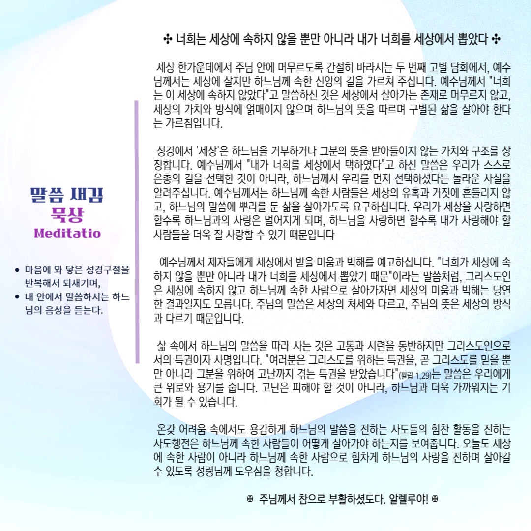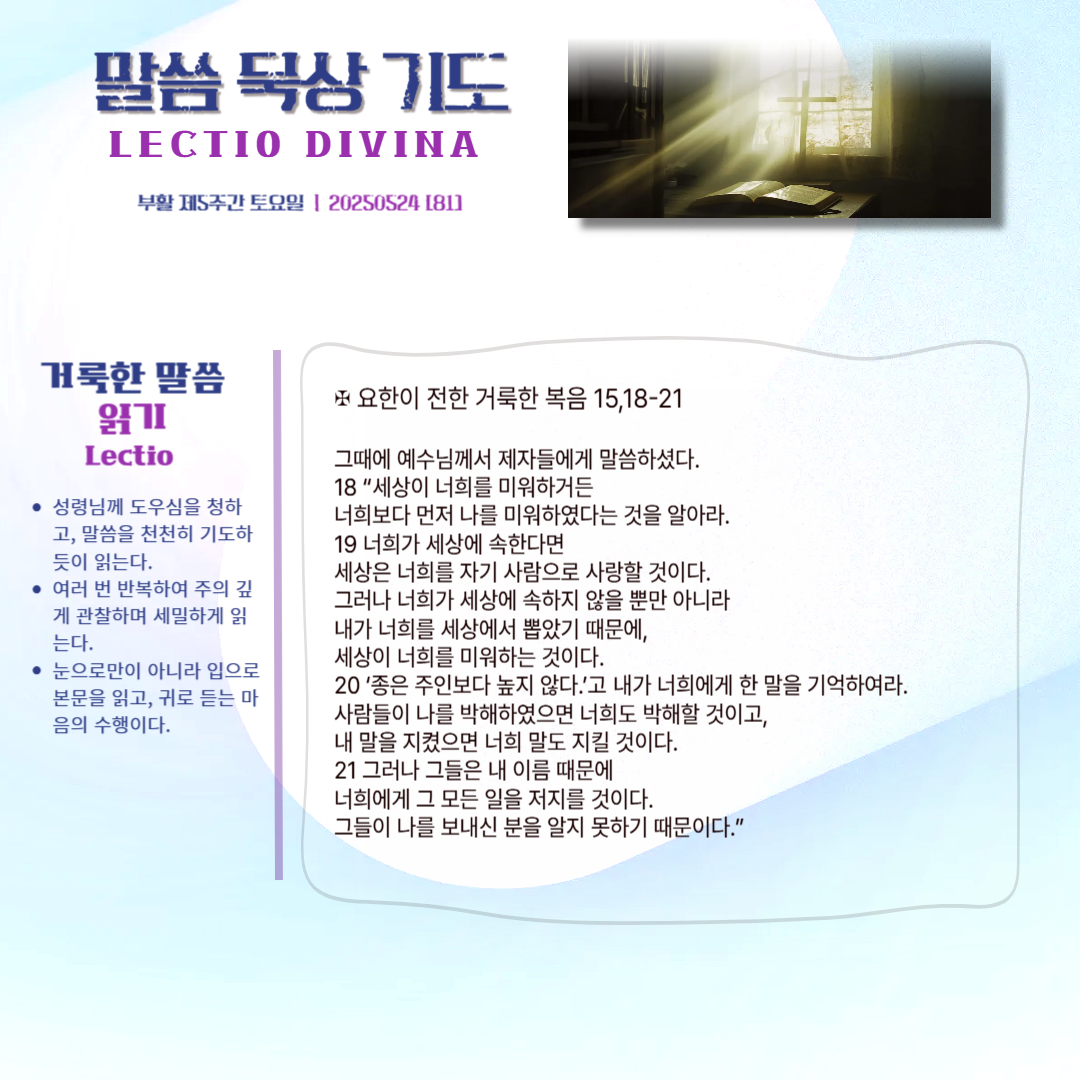 말씀묵상기도 LECTIO DIVINA [81] 20250524 부활5주간 토