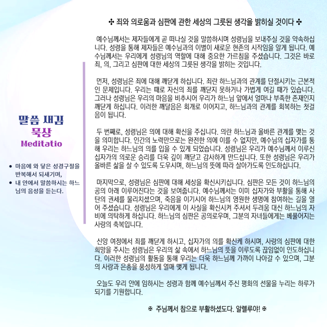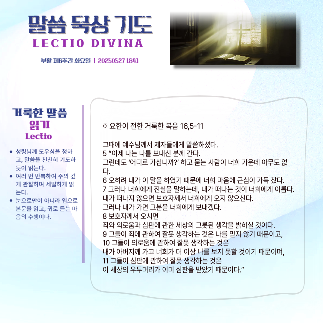 말씀묵상기도 LECTIO DIVINA [84] 부활제6주간 화 20250527