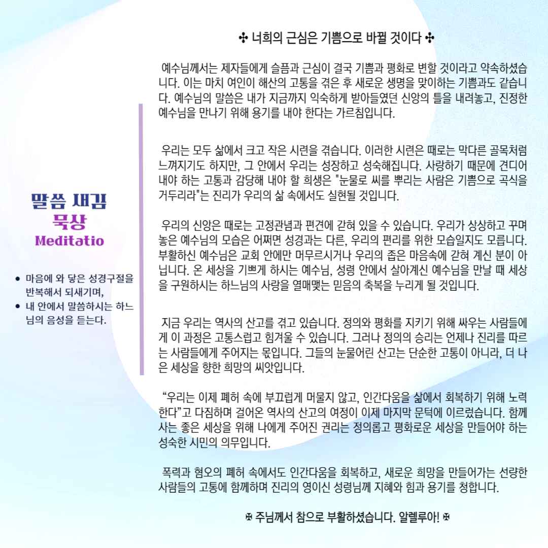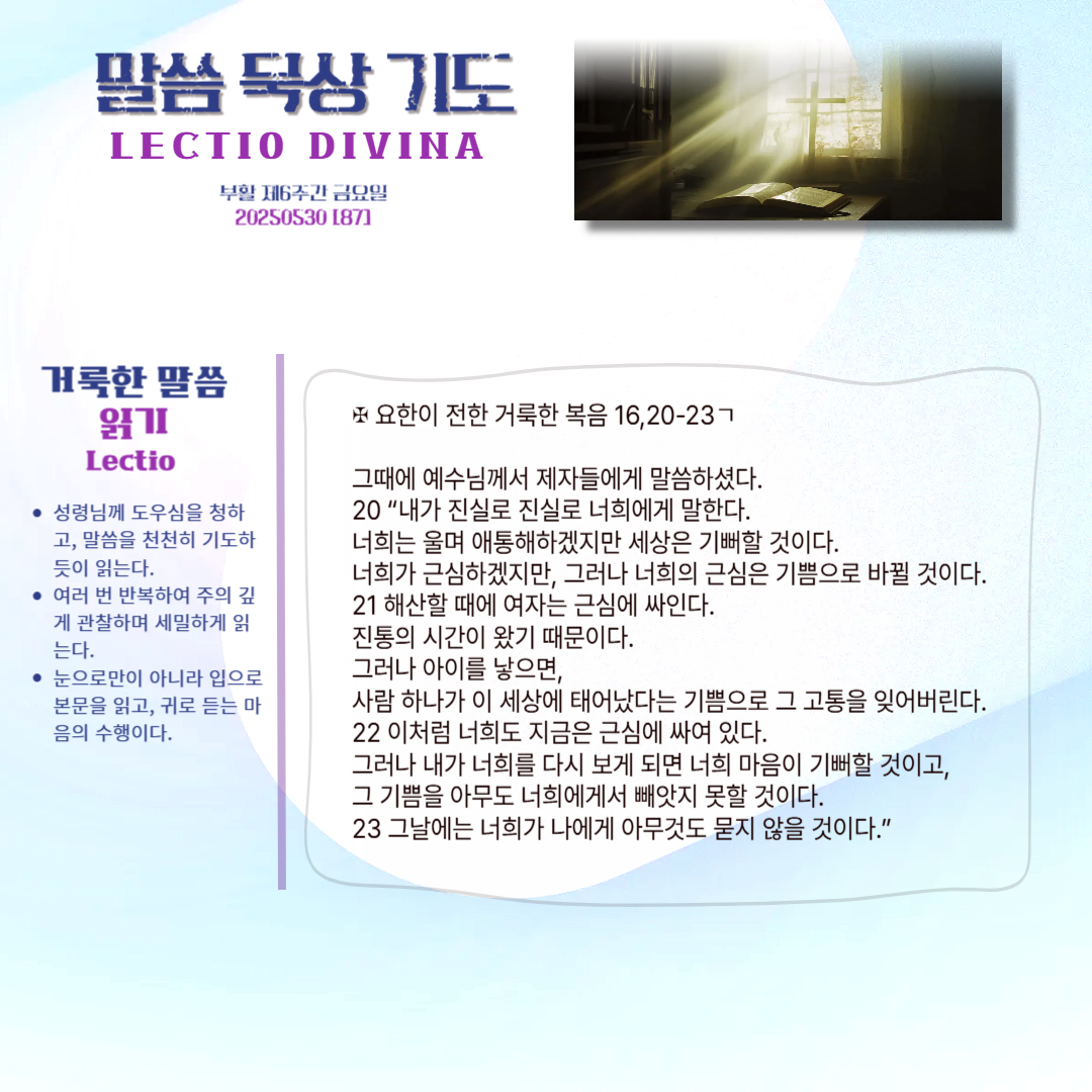 말씀묵상기도 LECTIO DIVINA [87] 20250530 부활제6주간 금