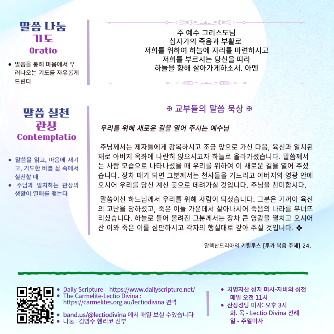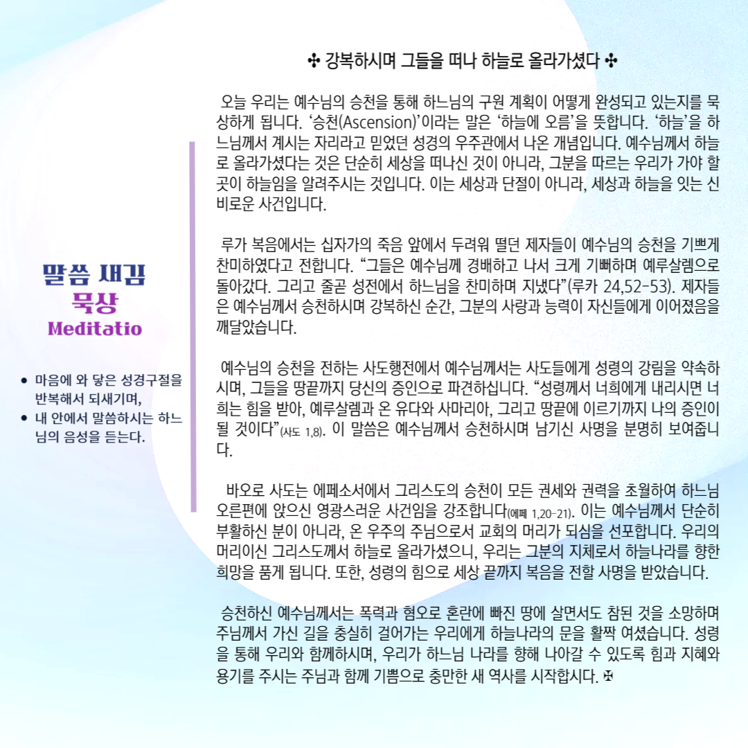 말씀묵상기도 LECTIO DIVINA [89] 20250601 주님승천대축일