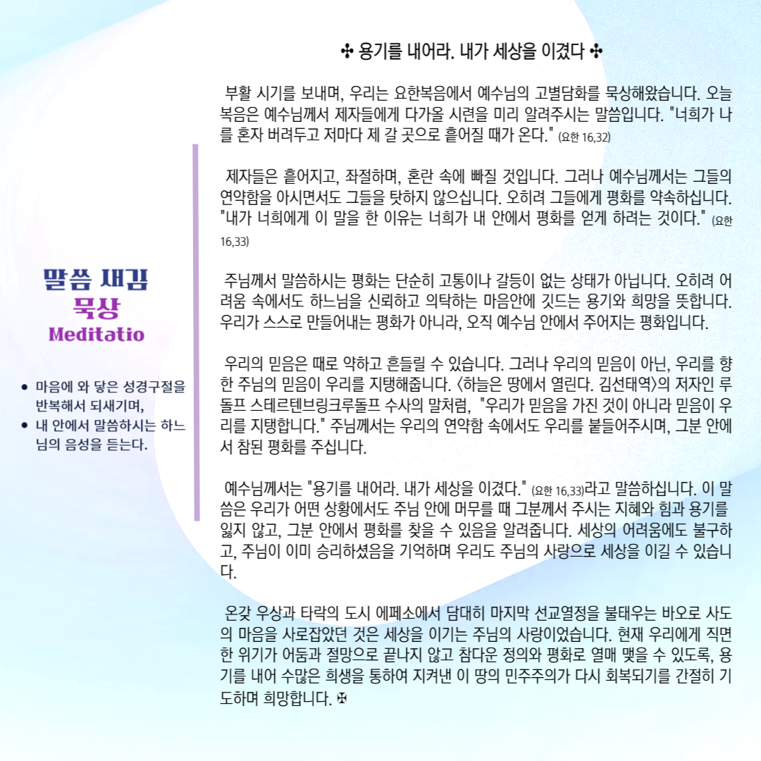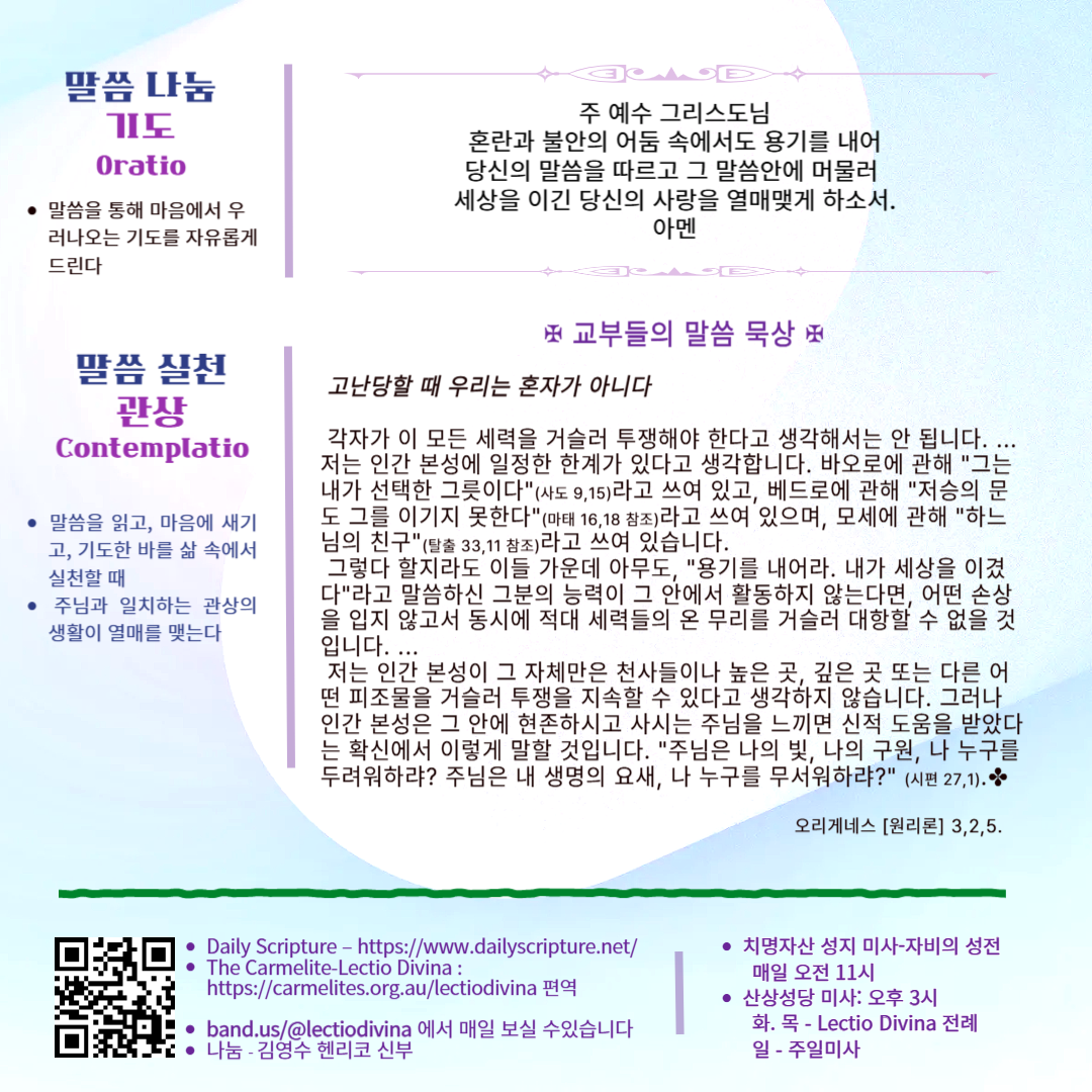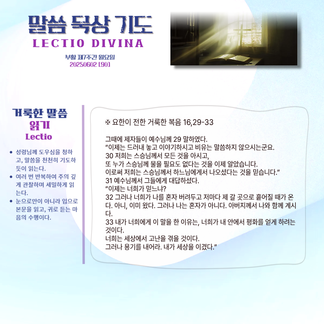 말씀묵상기도 LECTIO DIVINA [90] 20250602 부활 제7주간 월요일