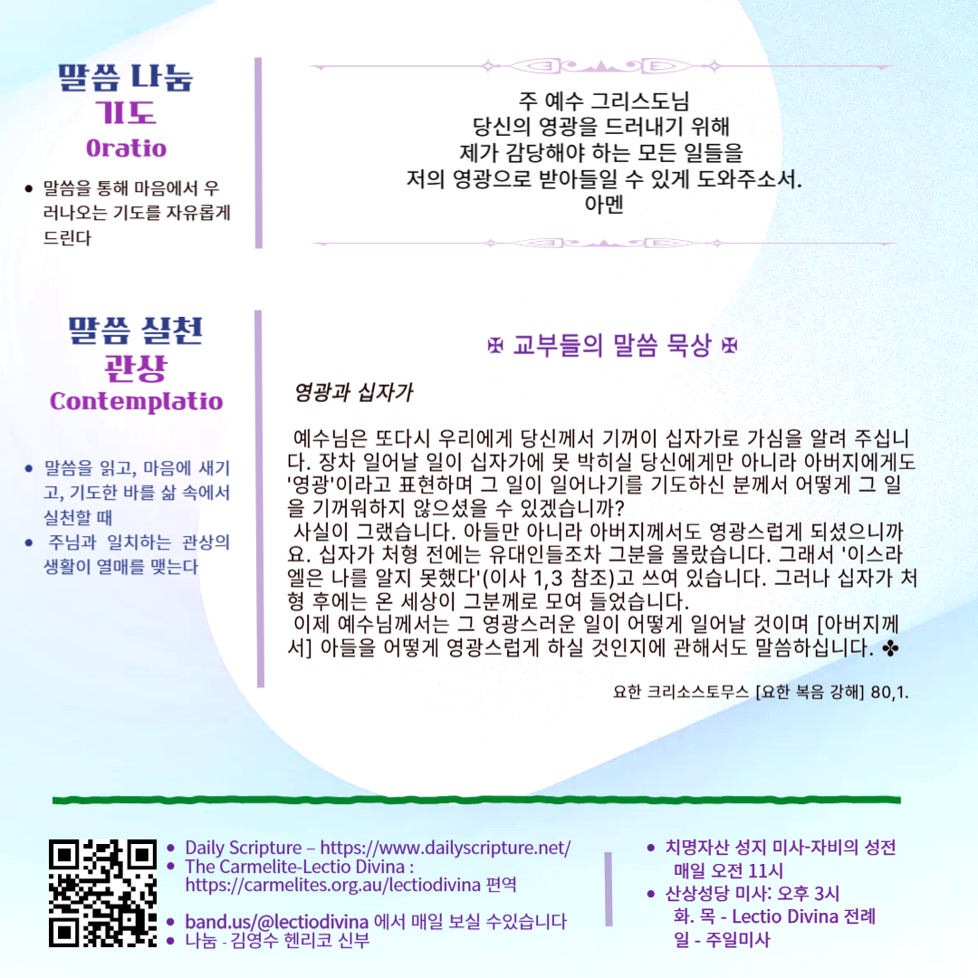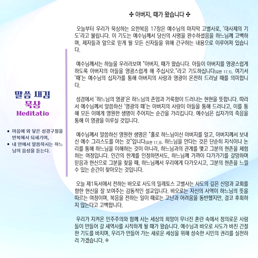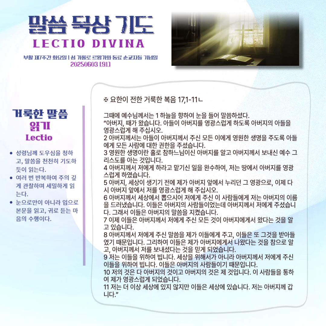 말씀묵상기도 LECTIO DIVINA [91] 20250603 부활 제7주간 화요일