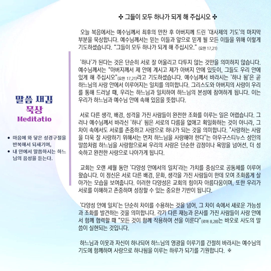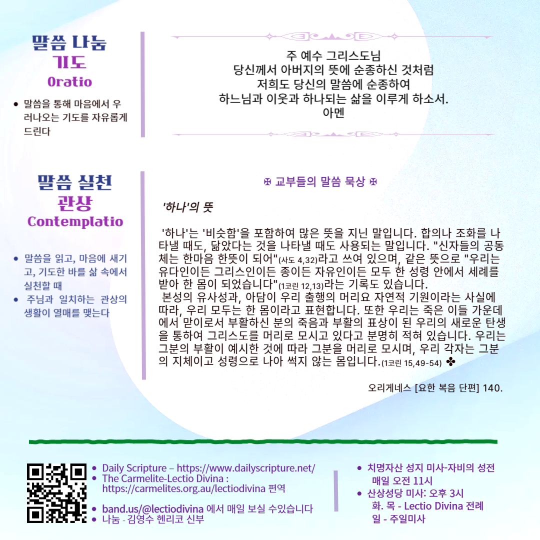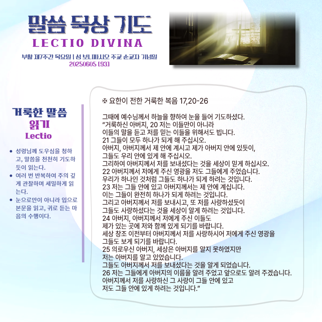 말씀묵상기도 LECTIO DIVINA [93] 20250605 부활 제7주간 목요일