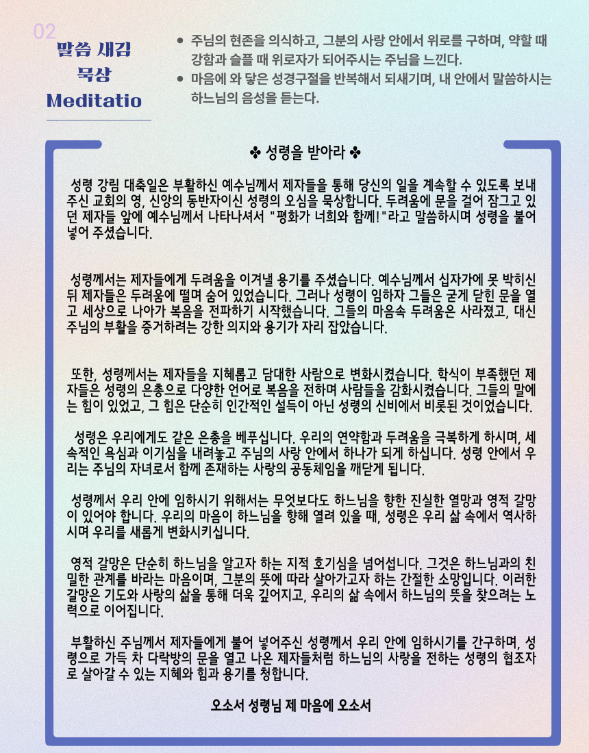 말씀묵상기도 LECTIO DIVINA [96] 20250608 성령 강림 대축일
