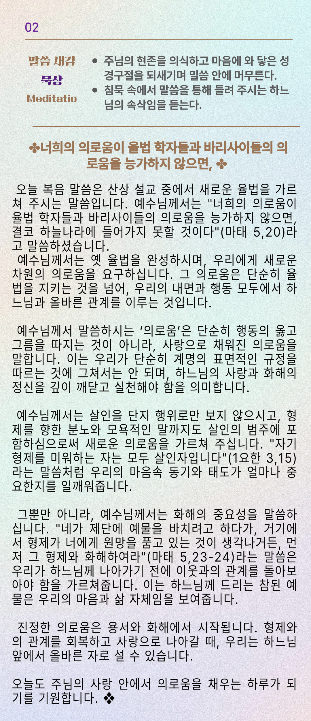 말씀묵상기도 LECTIO DIVINA [100] 20250612 연중 제10주간 목요일