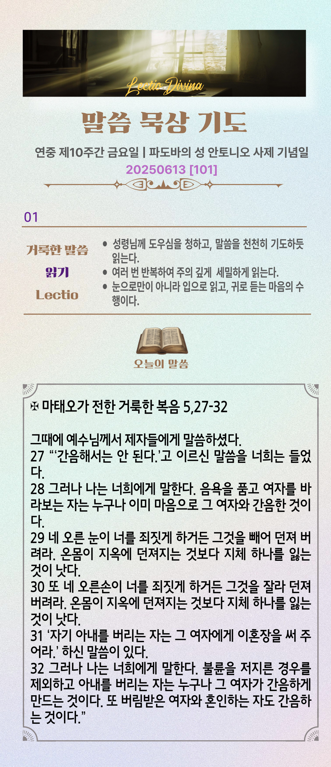 말씀묵상기도 LECTIO DIVINA [101] 20250613 옂눙 제10주 금요일 | 파도바의 성 안토니오 사제