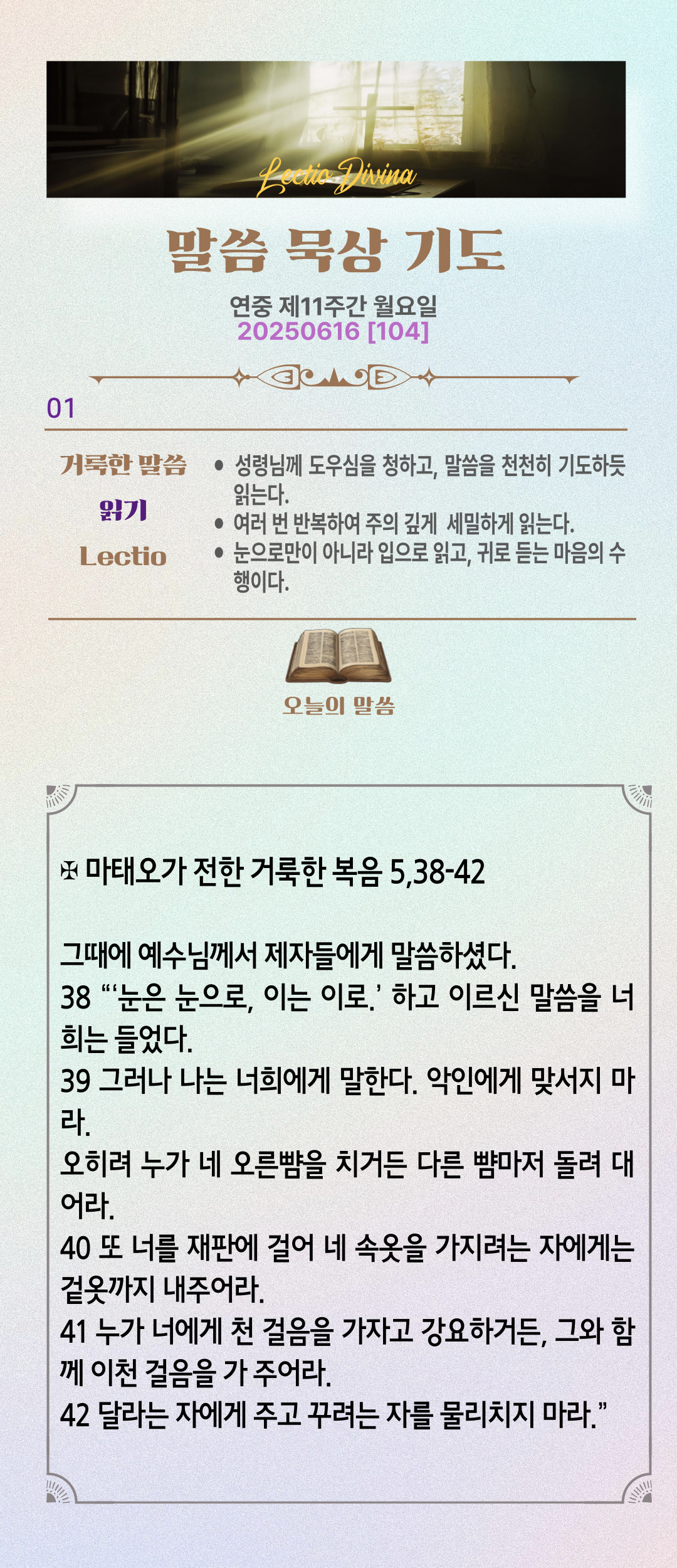 말씀묵상기도 LECTIO DIVINA [104] 20250616 연중 제11주간 월요일