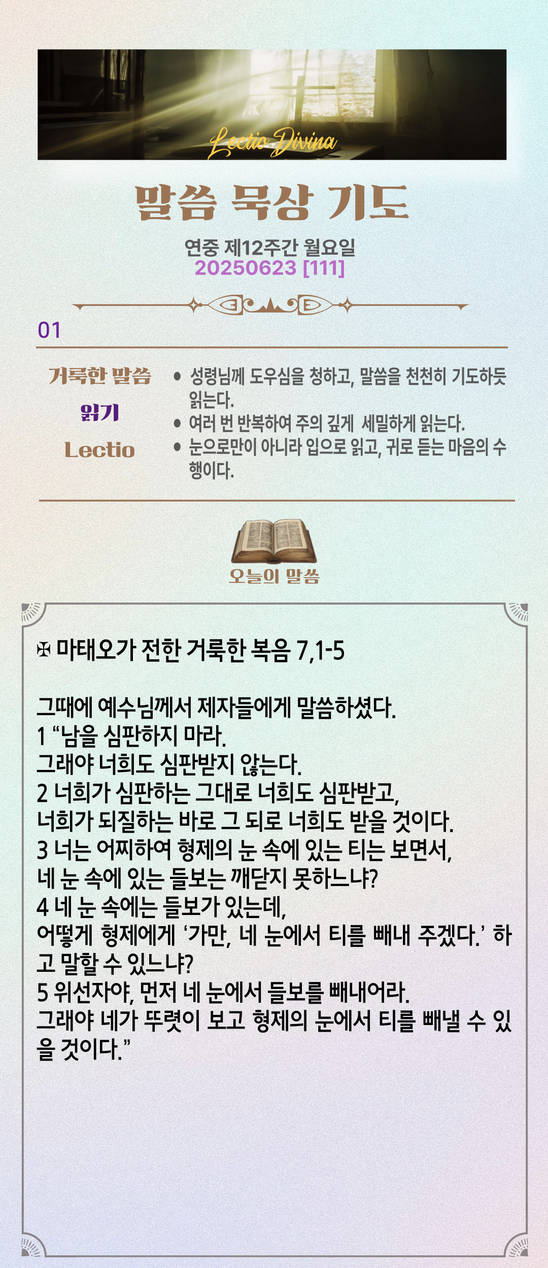 말씀묵상기도 LECTIO DIVINA [111] 20250623 연중 제12주간 월요일