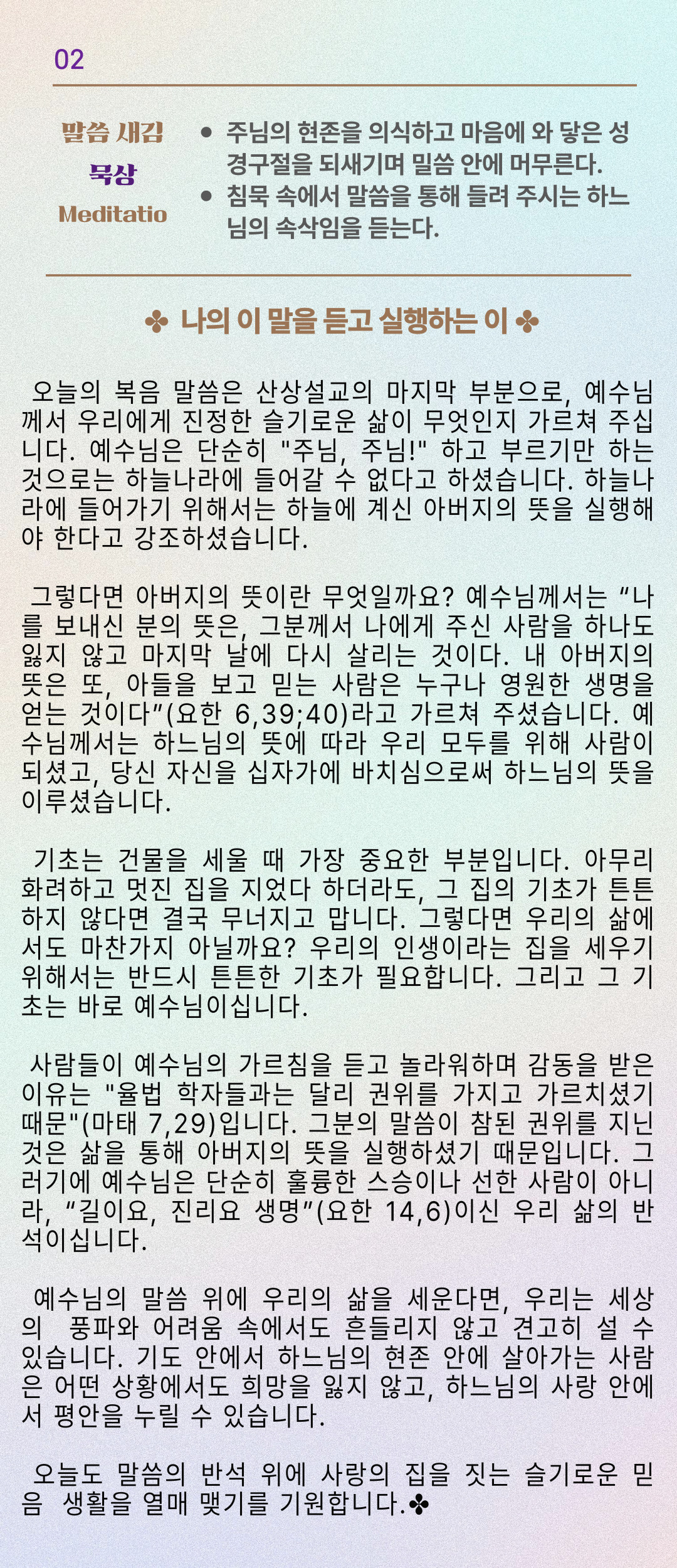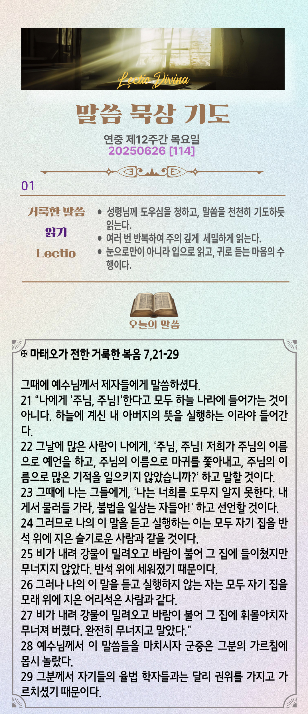 말씀묵상기도 LECTIO DIVINA [114] 20250626 연중 제12주간 목요일