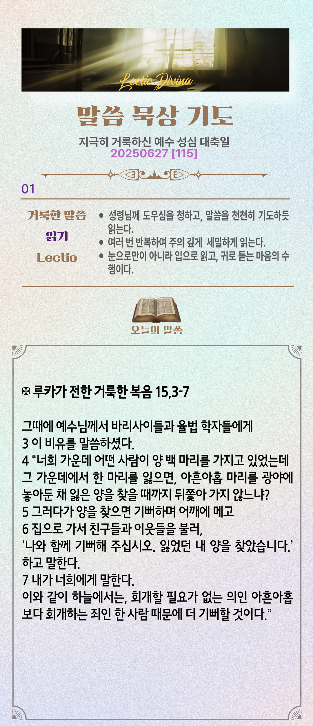말씀묵상기도 LECTIO DIVINA [115] 20250627 지극히 거룩하신 예수 성심 대축일
