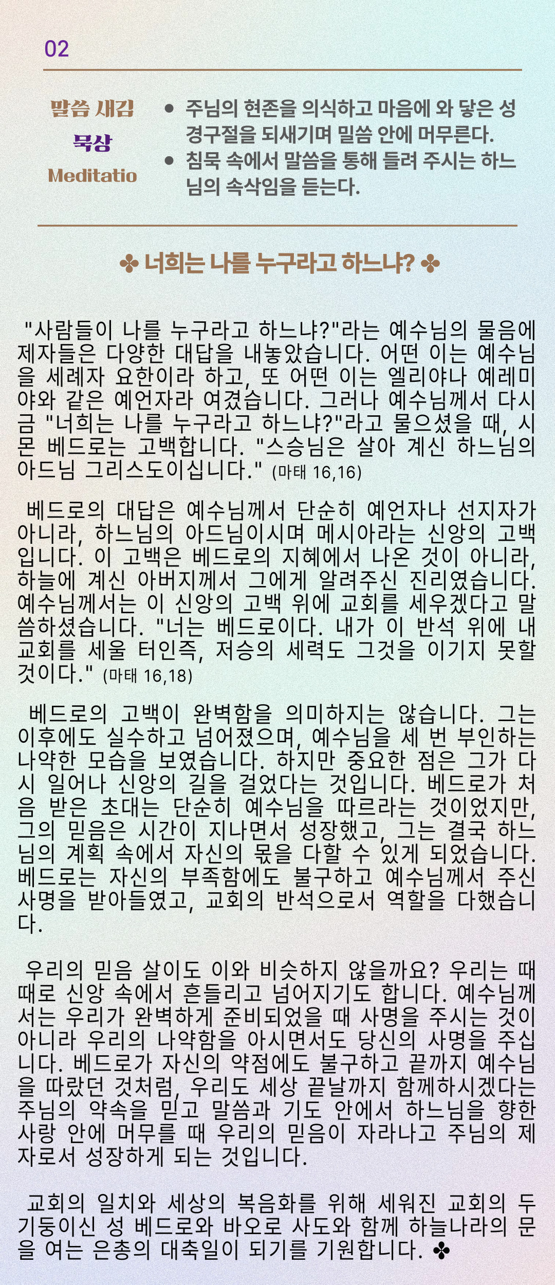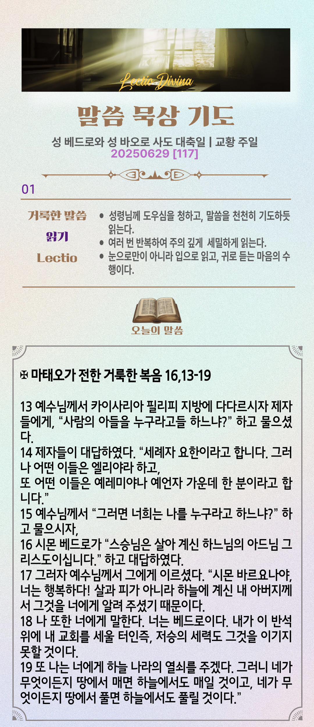 말씀묵상기도 LECTIO DIVINA [117] 20250629 성 베드로와 성 바오로 사도 대축일 | 교황 주일