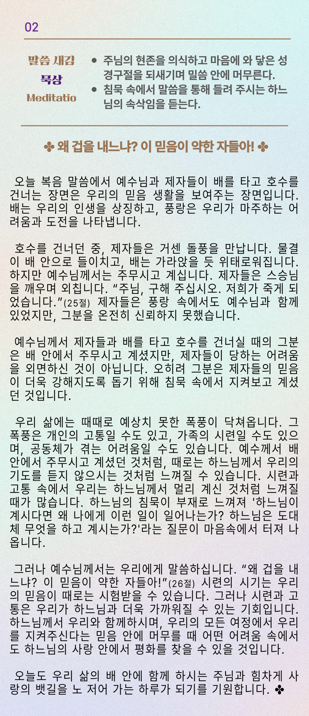 말씀묵상기도 LECTIO DIVINA [119] 20250701 연중 제13주간 화요일