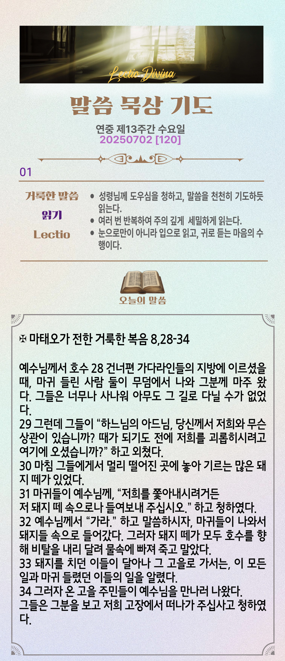 말씀묵상기도 LECTIO DIVINA [120] 20250702 연중 제13주간 수요일
