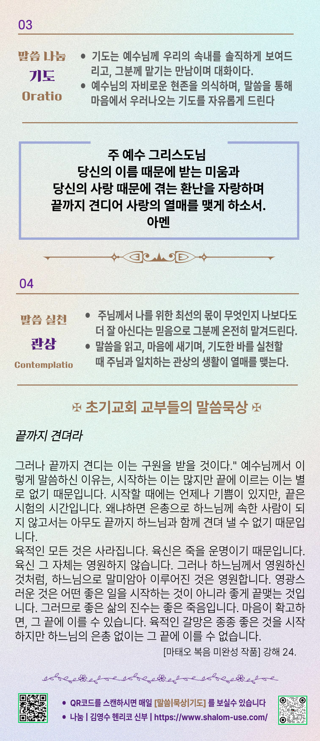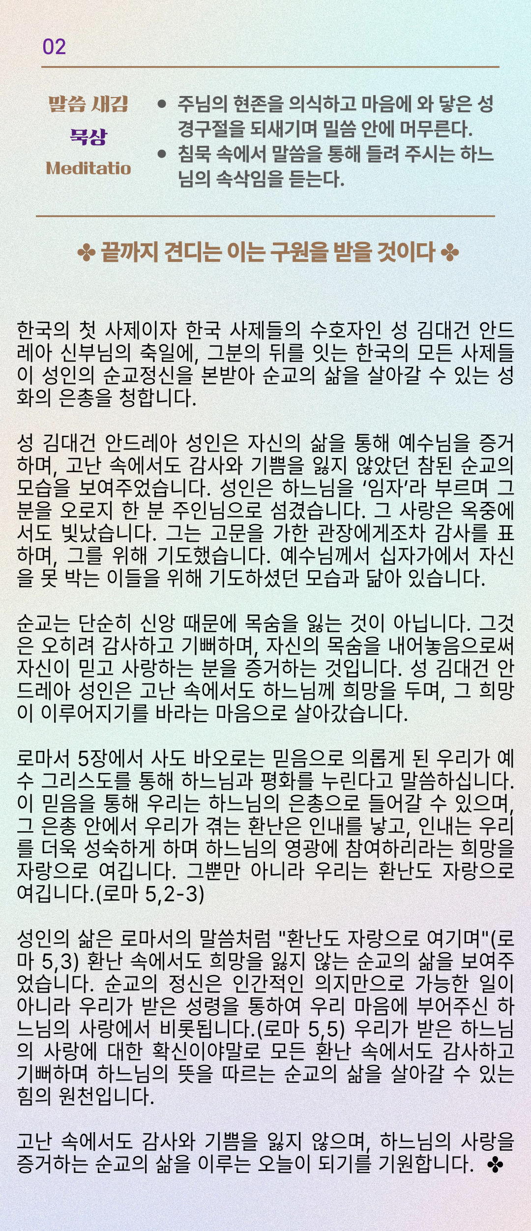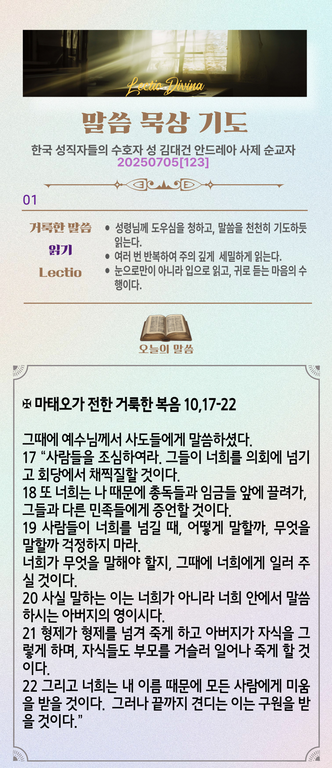말씀묵상기도 LECTIO DIVINA [123] 20250705 한국 성직자들의 수호자 성 김대건 안드레아 사제 순교자
