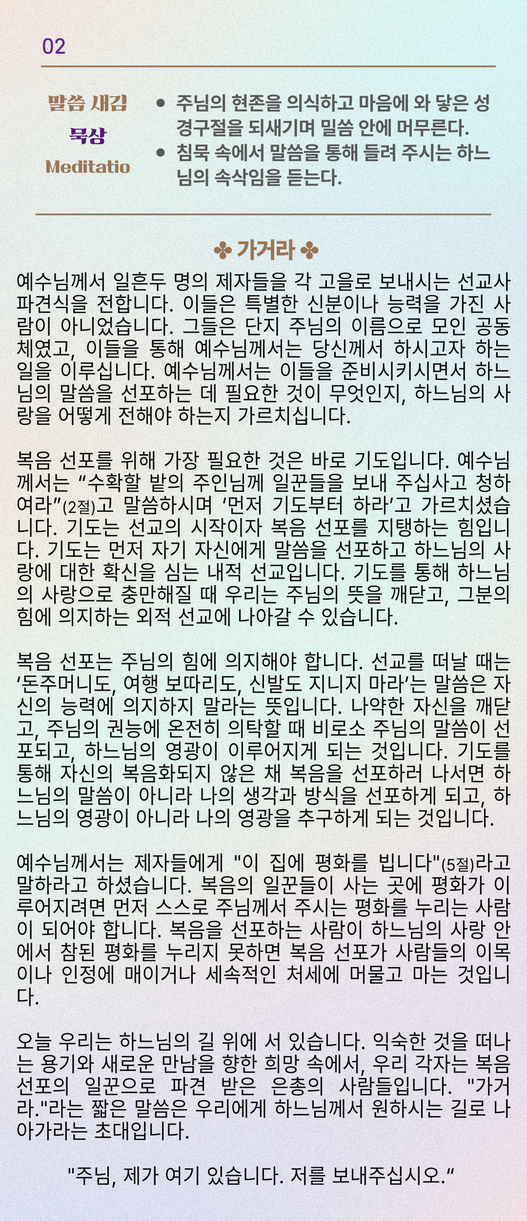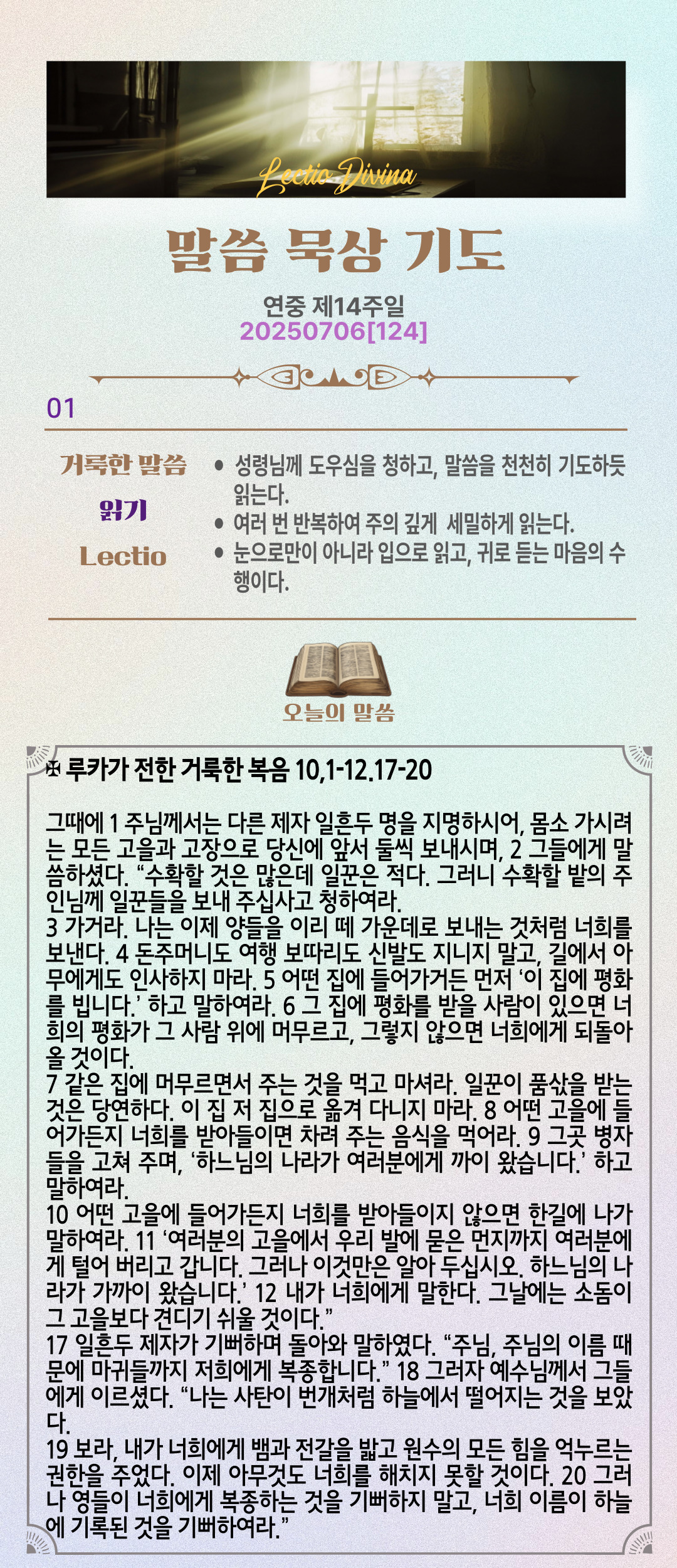 말씀묵상기도 LECTIO DIVINA [124] 20250706 연중 제14주일