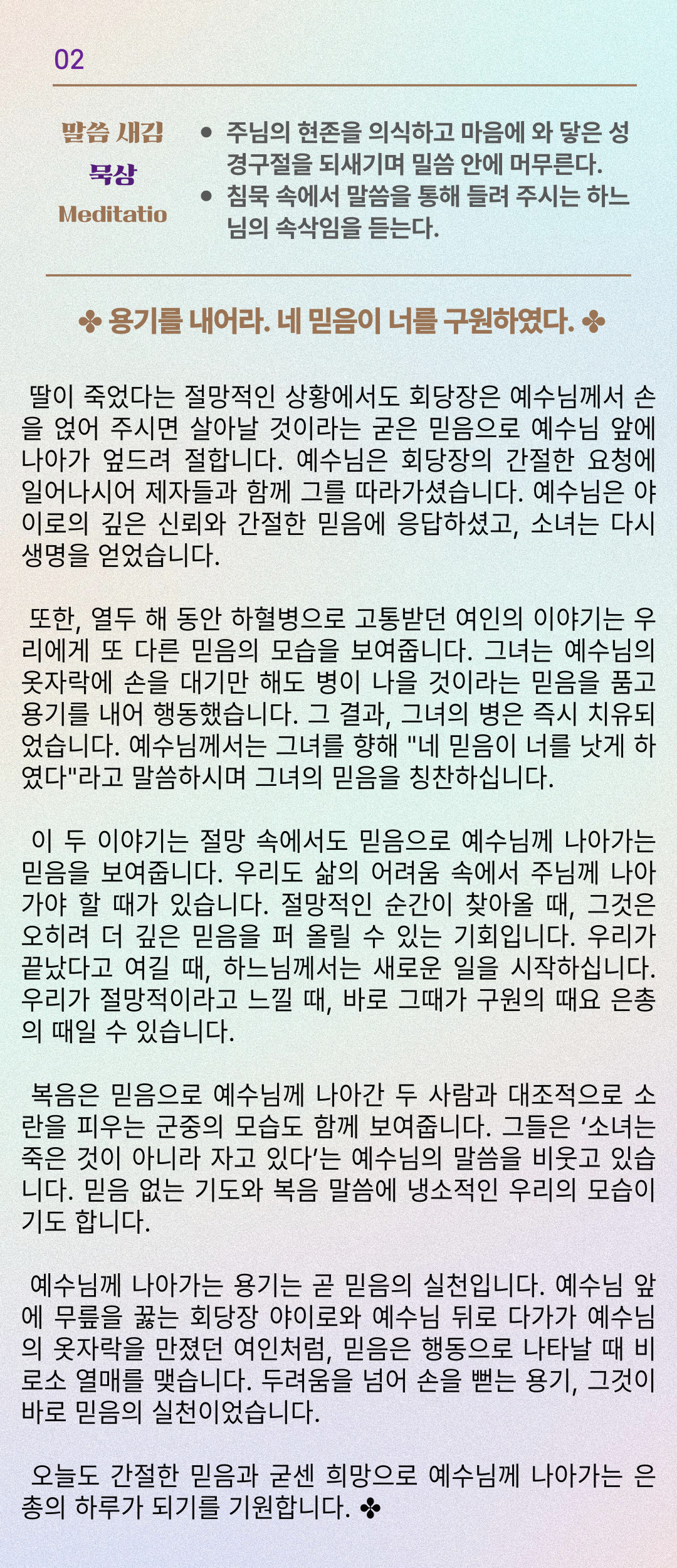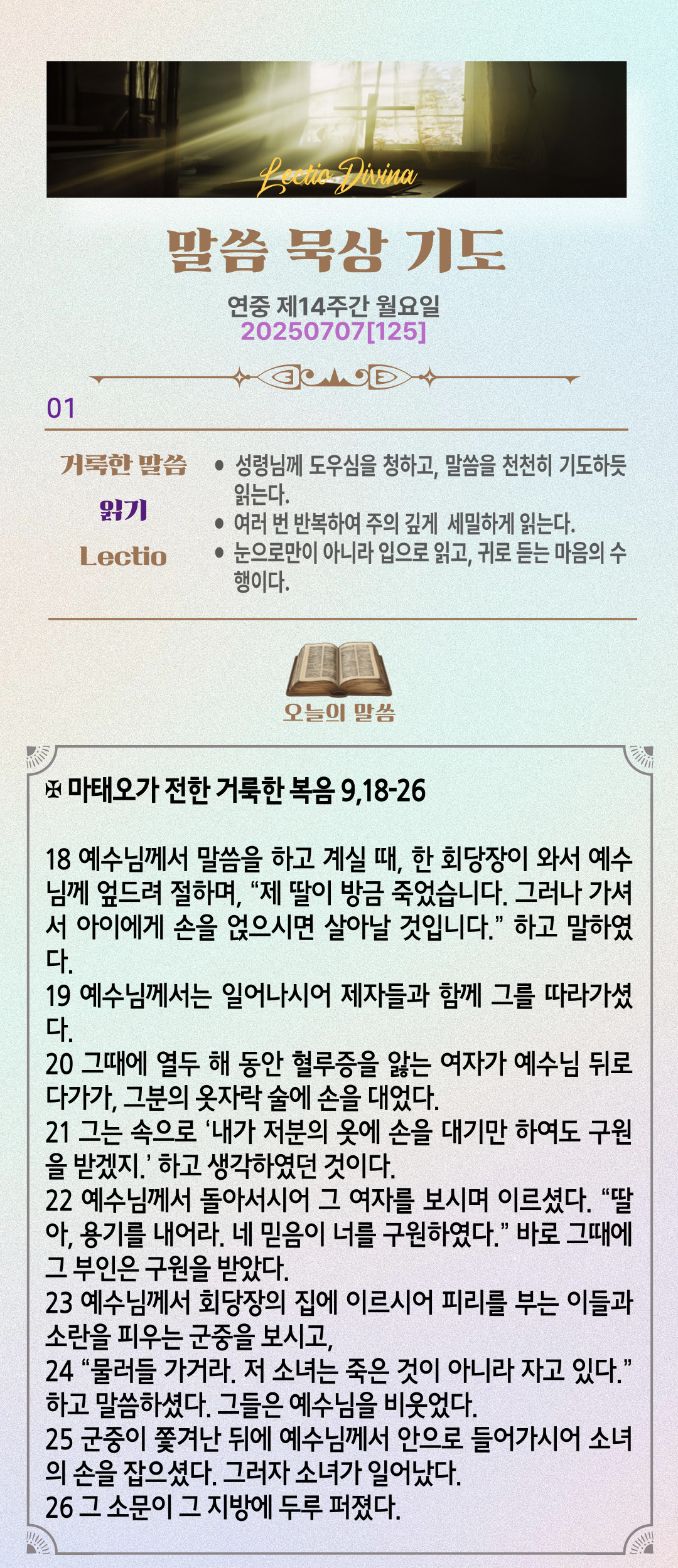 말씀묵상기도 LECTIO DIVINA [125] 20250707 연중 제14주간 월요일