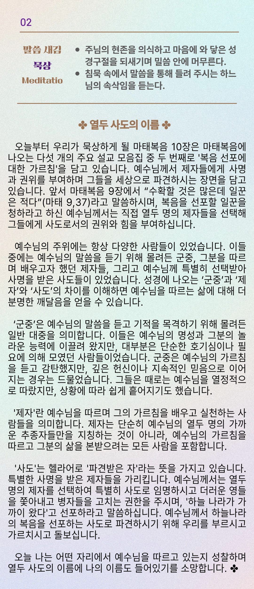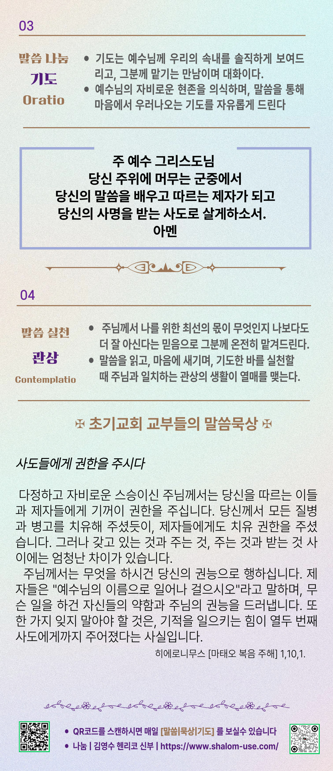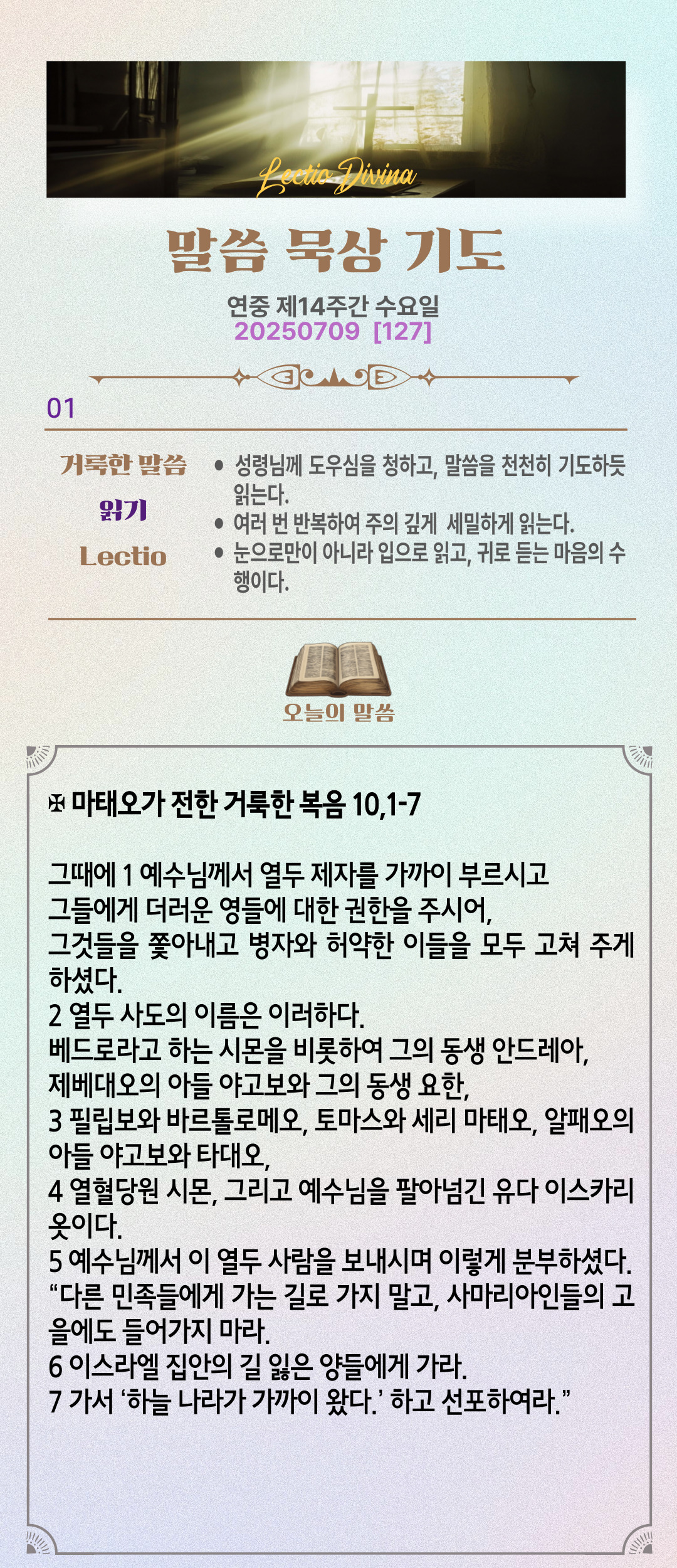 말씀묵상기도 LECTIO DIVINA [127] 20250709 연중 제14주간 수요일