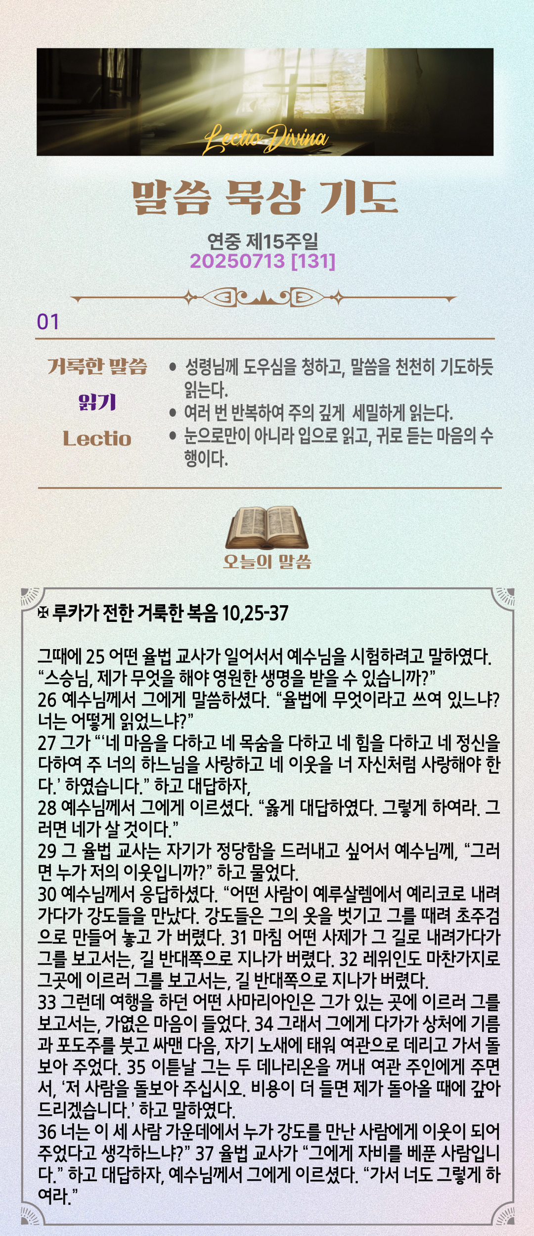 말씀묵상기도 LECTIO DIVINA [131] 20250713 연중 제15주일