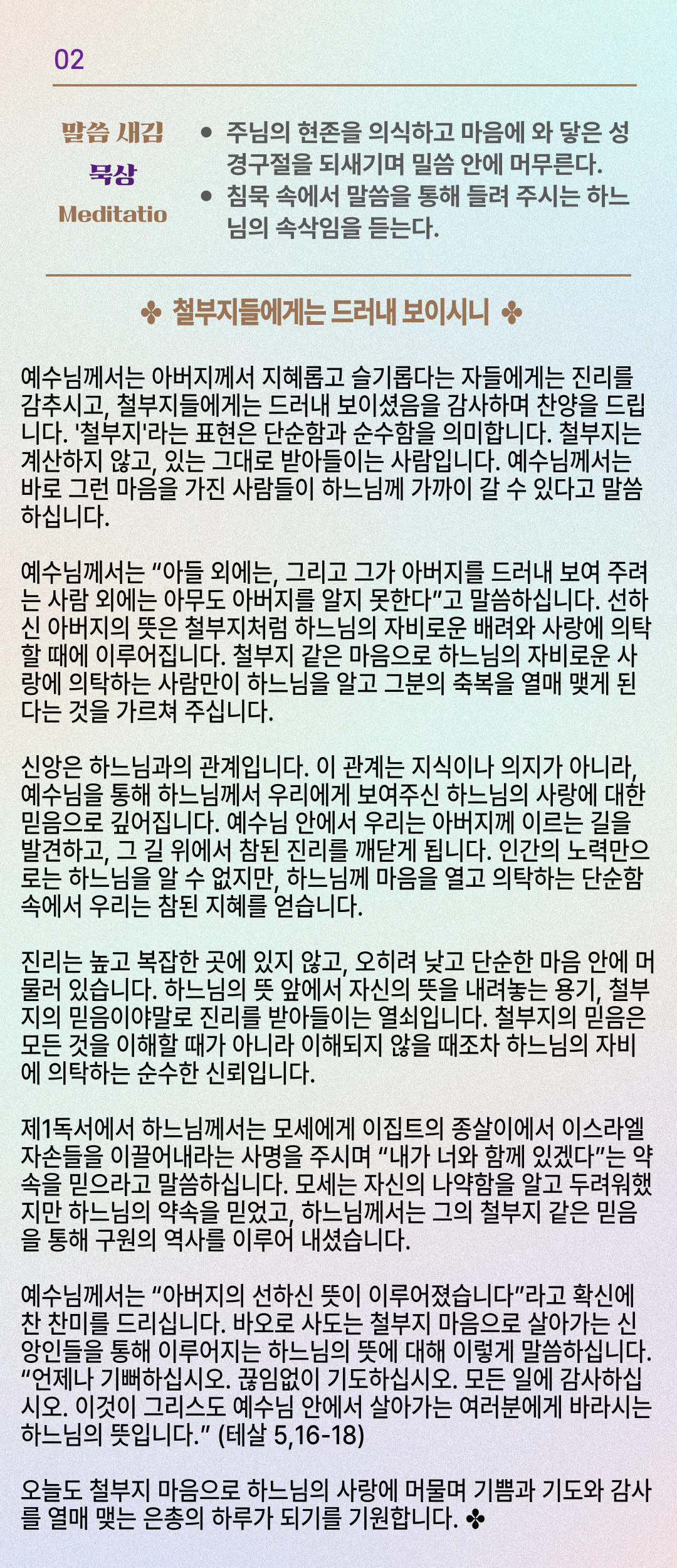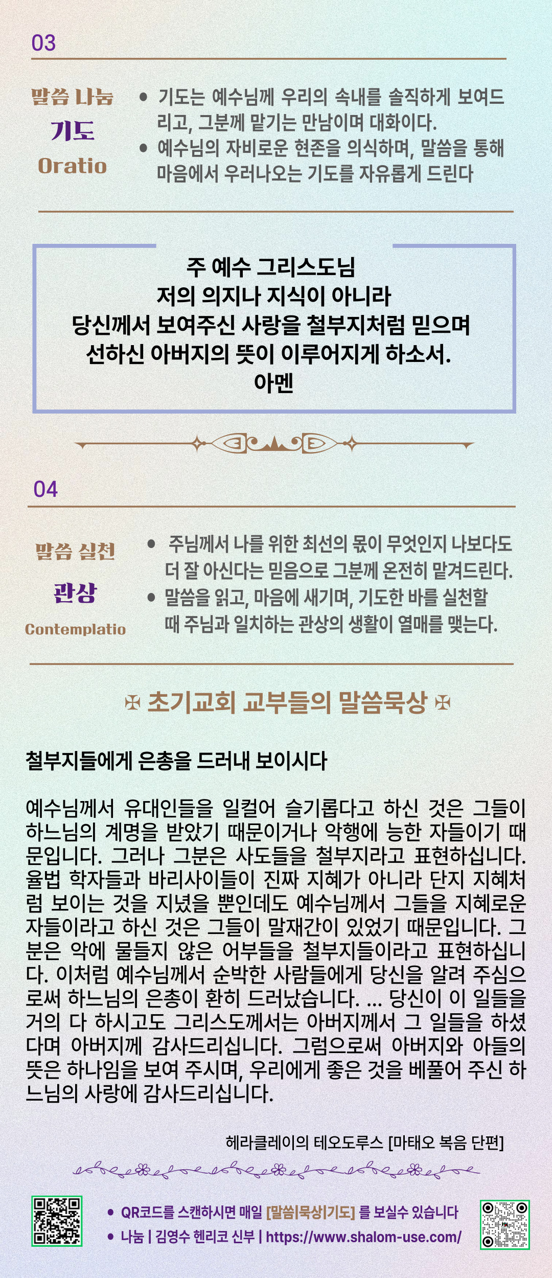 말씀묵상기도 LECTIO DIVINA [134] 20250716 연중 제15주간 수요일