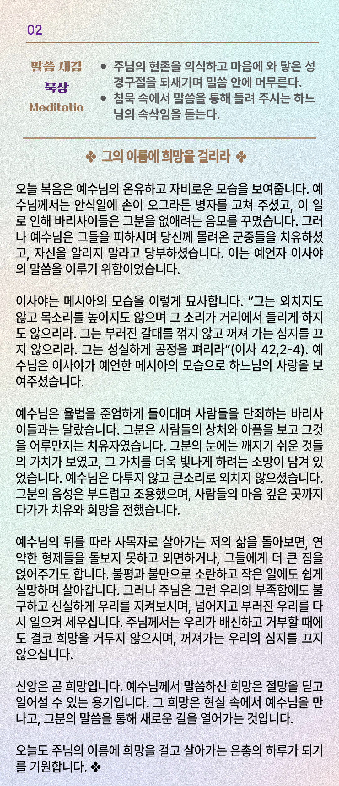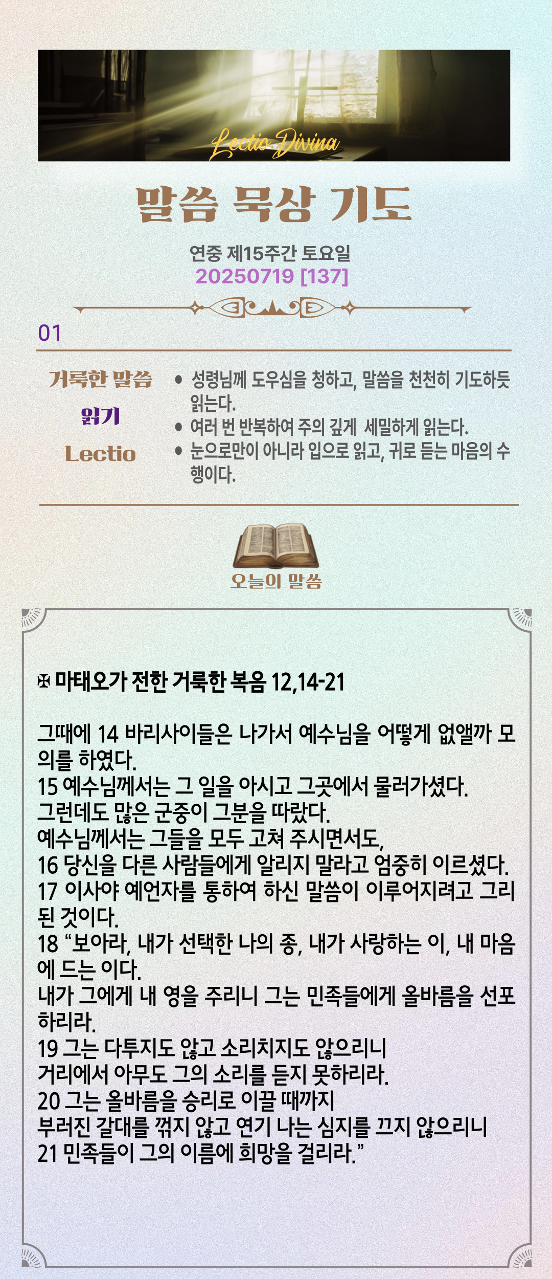 말씀묵상기도 LECTIO DIVINA [137] 20250719 연중 제15주간 토요일