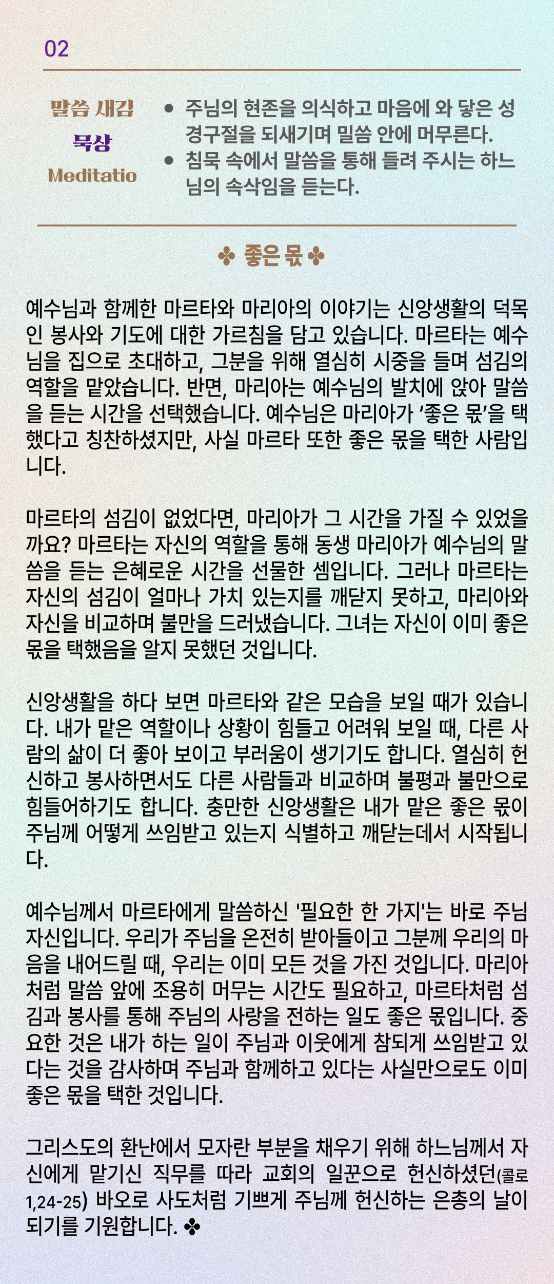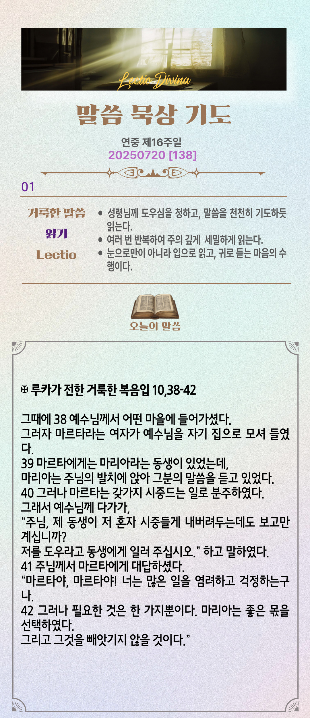 말씀묵상기도 LECTIO DIVINA [138] 20250720 연중 제16주일