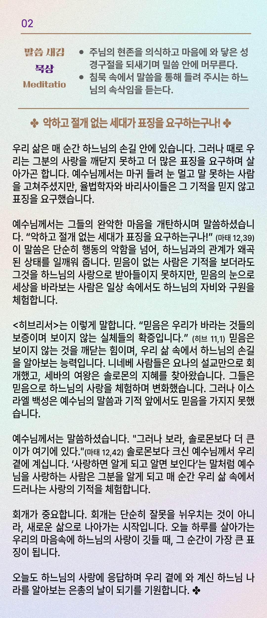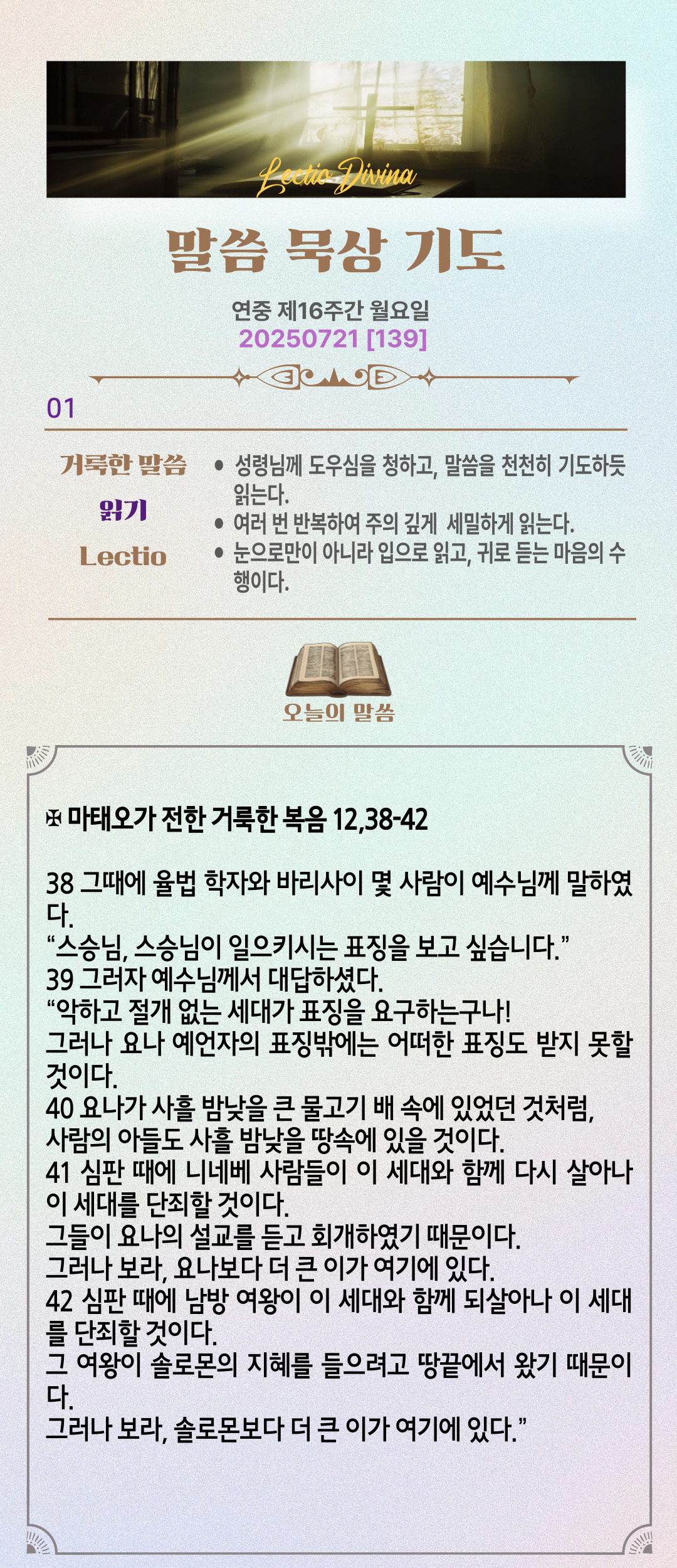 말씀묵상기도 LECTIO DIVINA [139] 20250721 연중 제16주간 월요일