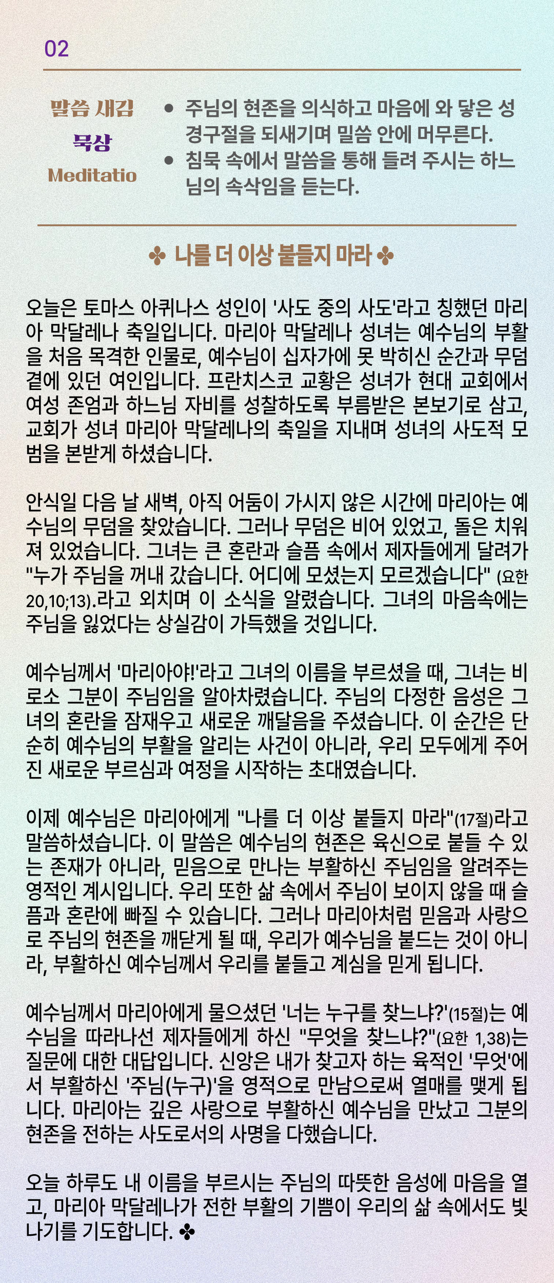 말씀묵상기도 LECTIO DIVINA [140] 20250722 성녀 마리아 막달레나 축일