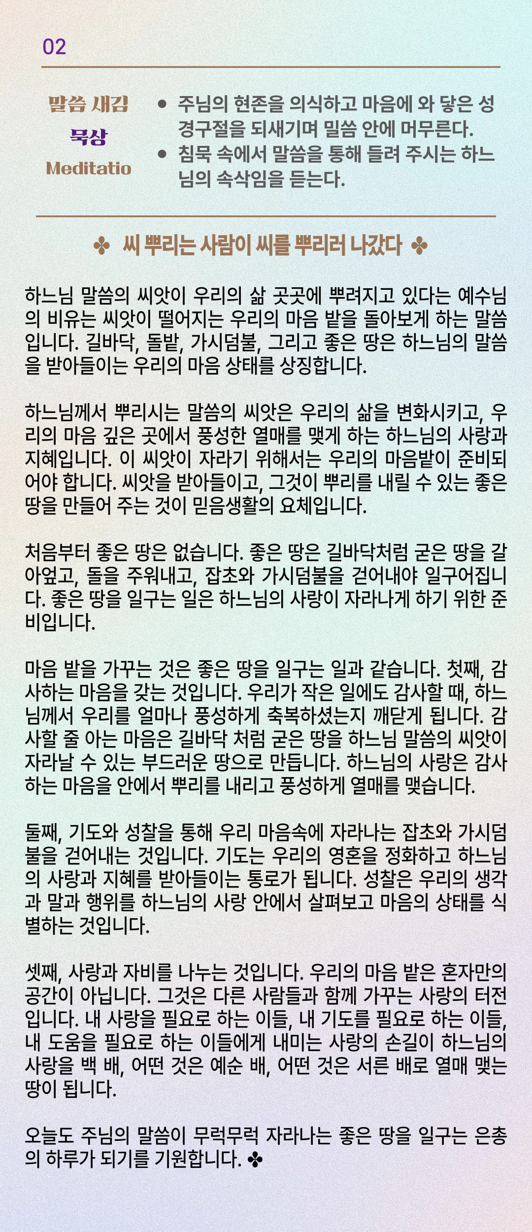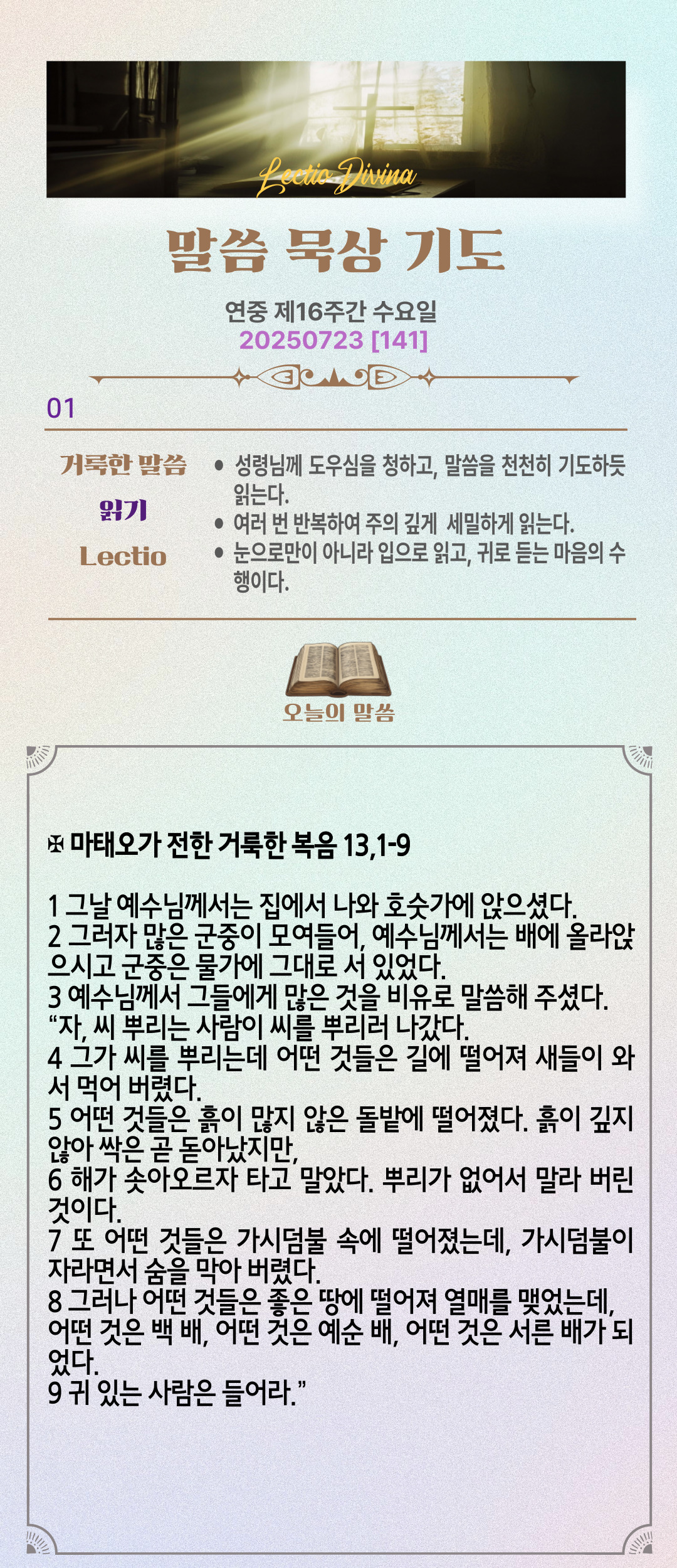 말씀묵상기도 LECTIO DIVINA [141] 20250723 연중 제16주간 수요일