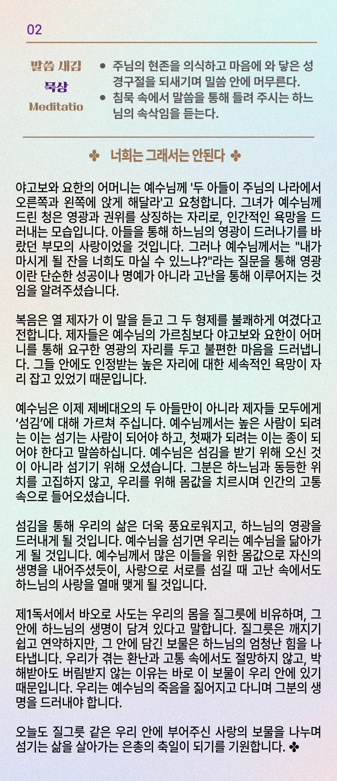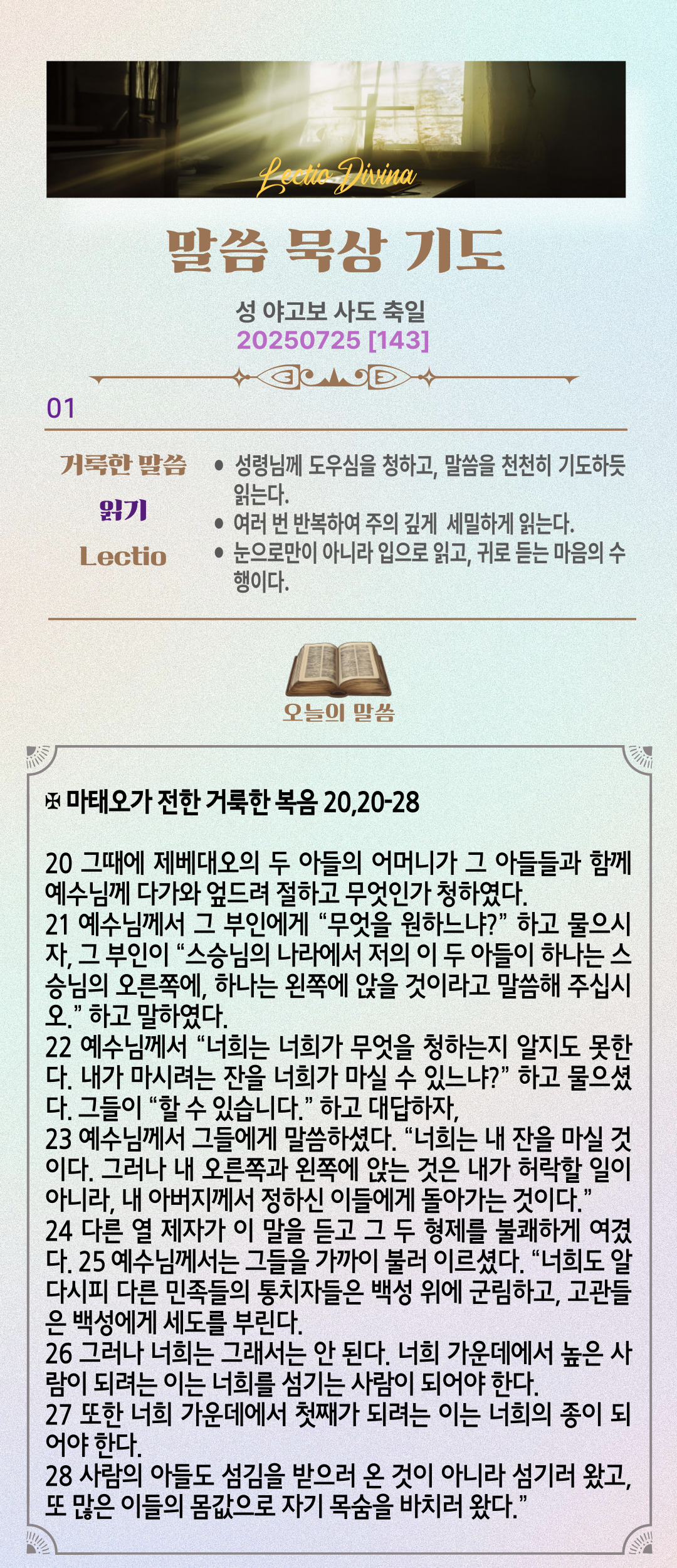 말씀묵상기도 LECTIO DIVINA [143] 20250725 성 야고보 사도 축일