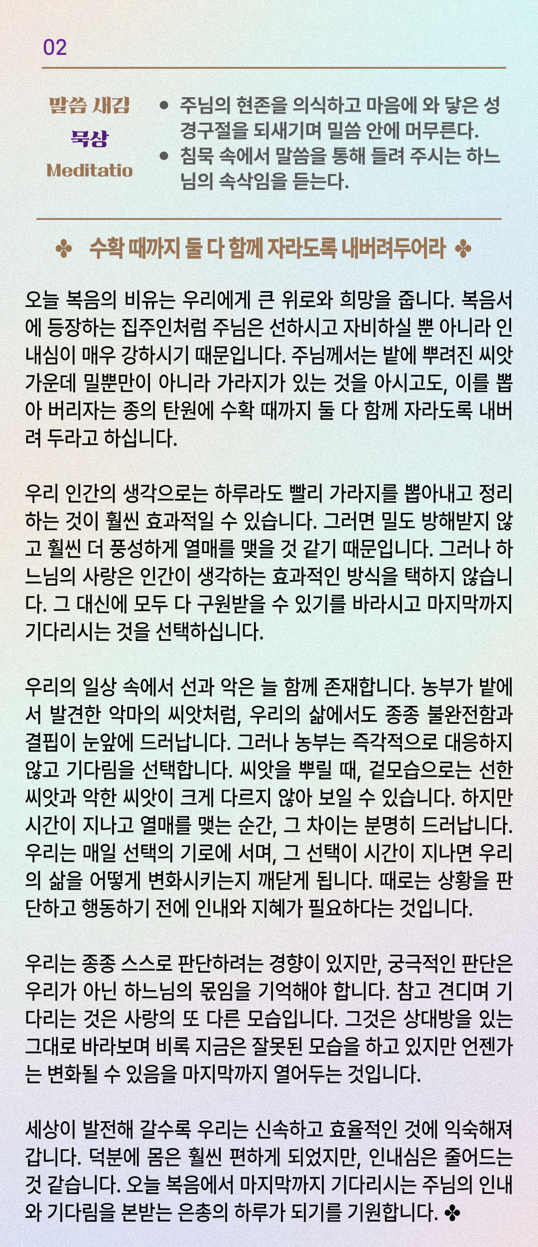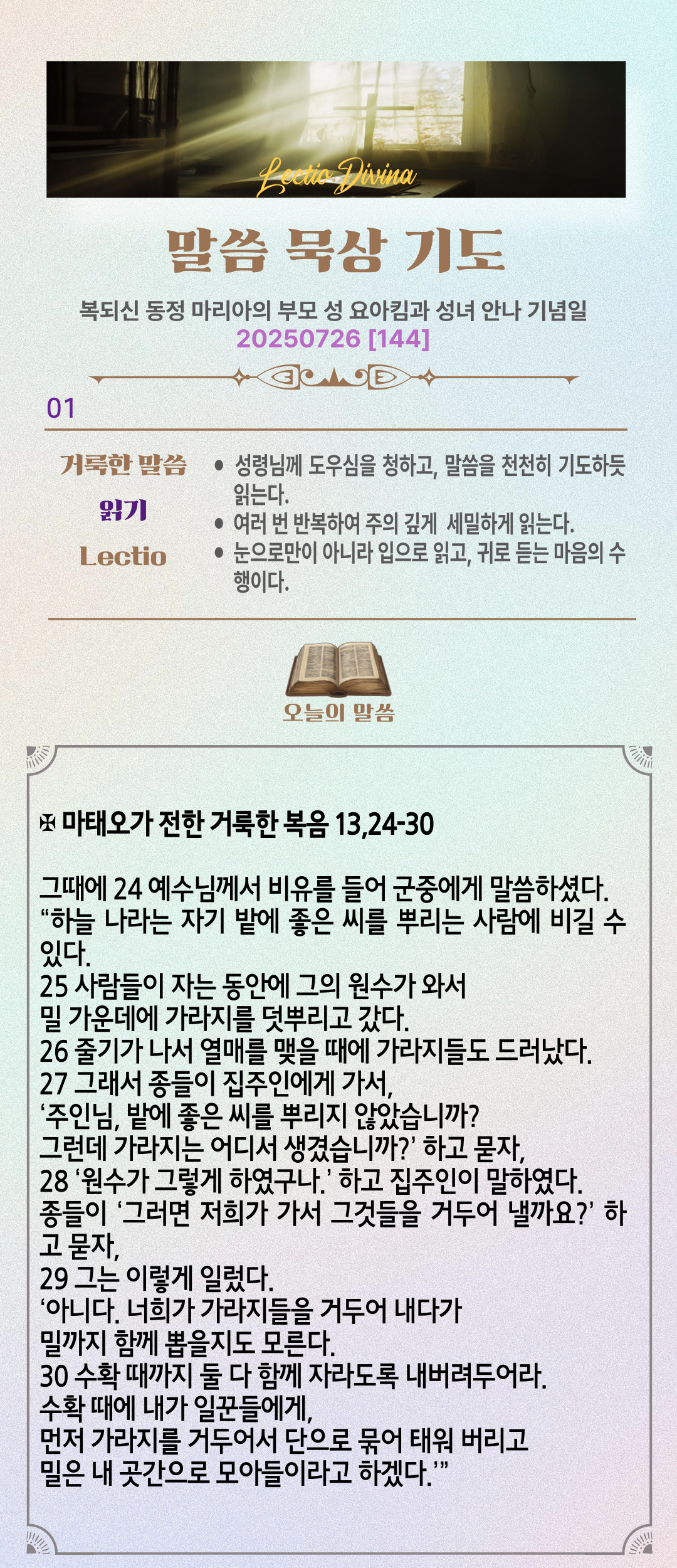 말씀묵상기도 LECTIO DIVINA [144] 연중 제16주간 토요일 | 복되신 동정 마리아의 부모 성 요아킴과 성녀 안나 기념일