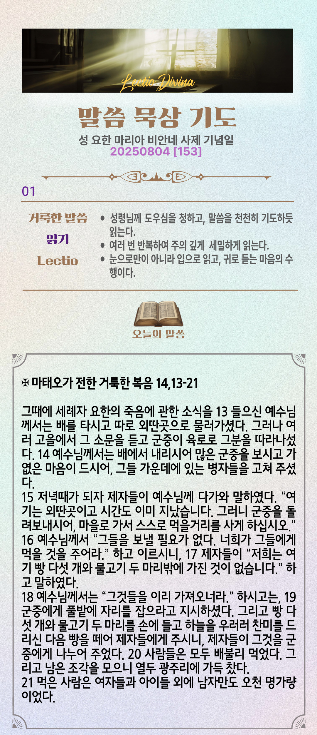 말씀묵상기도 LECTIO DIVINA 153] 20250804 연중 제18주간 월요일 | 성 요안 마리아 비안네 사제 기념일