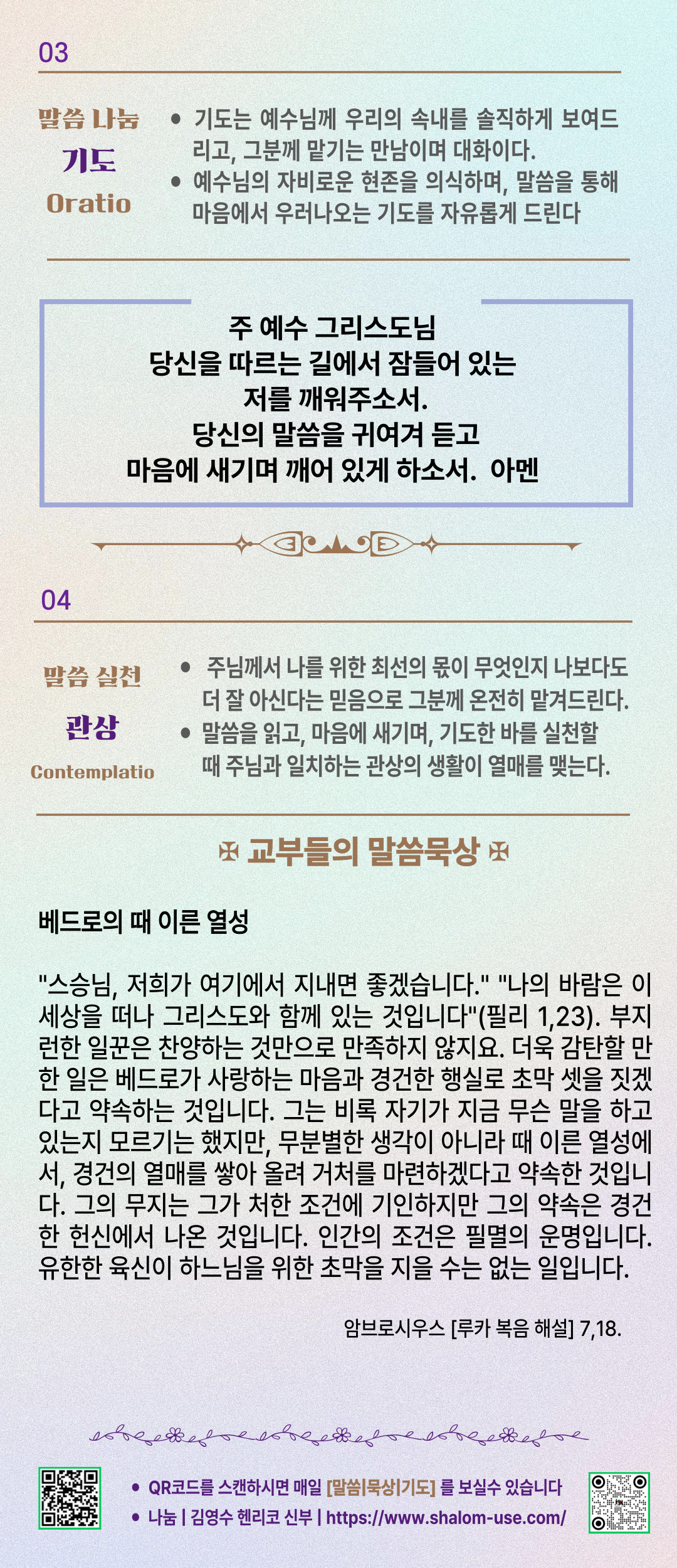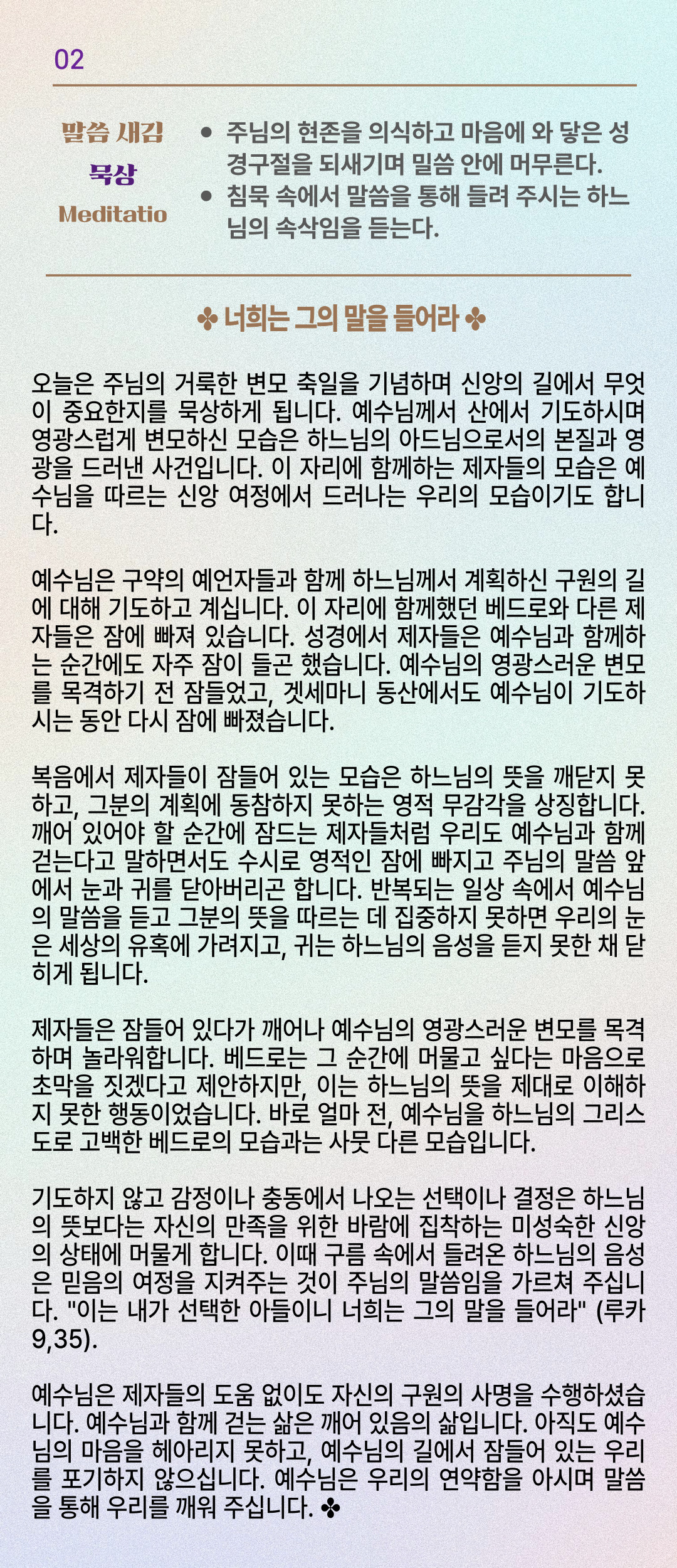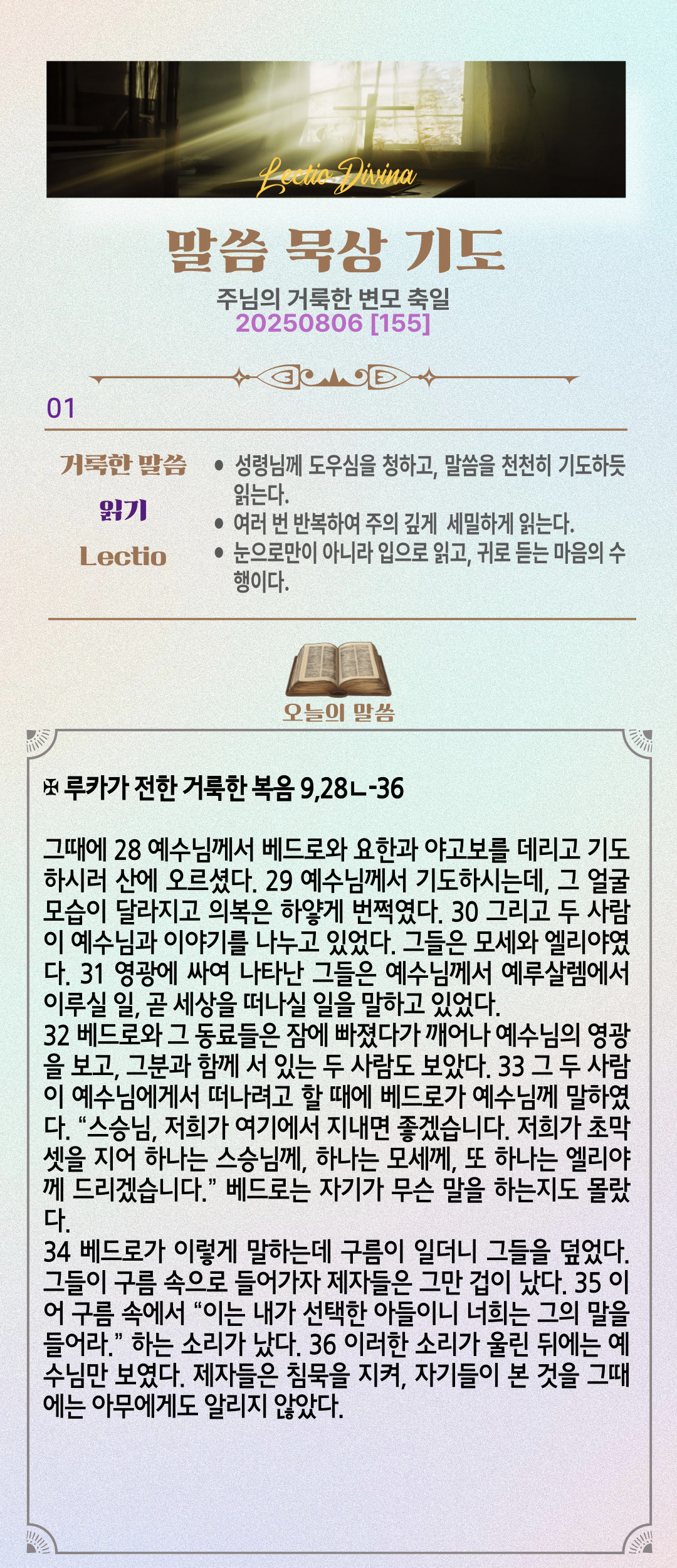 말씀묵상기도 LECTIO DIVINA [155] 20250806 주님의 거룩한 변모 축일