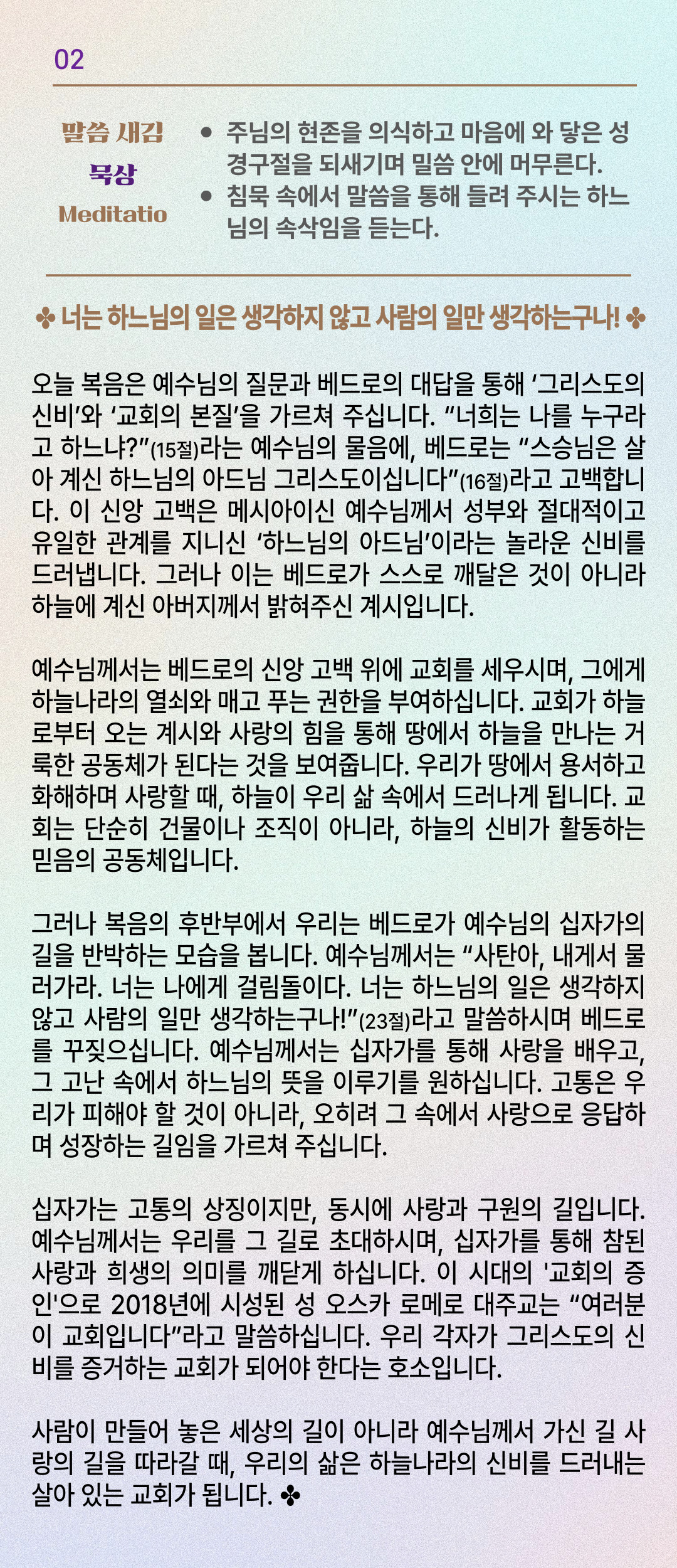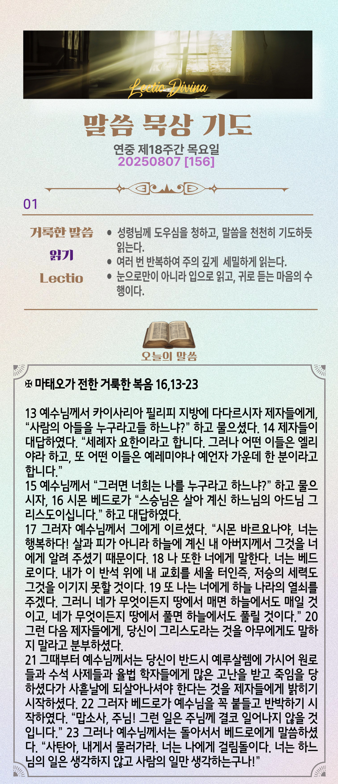 말씀묵상기도 LECTIO DIVINA [156] 20250807 연중 제18주간 목요일