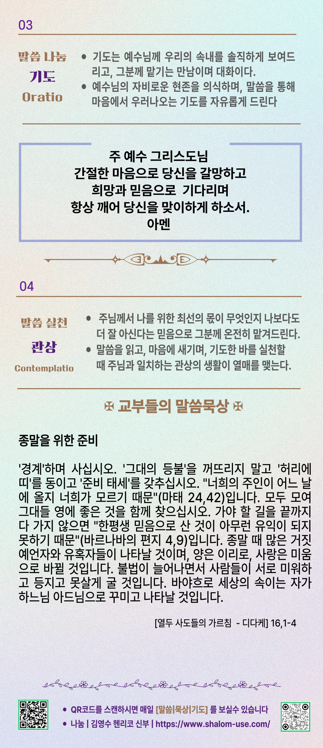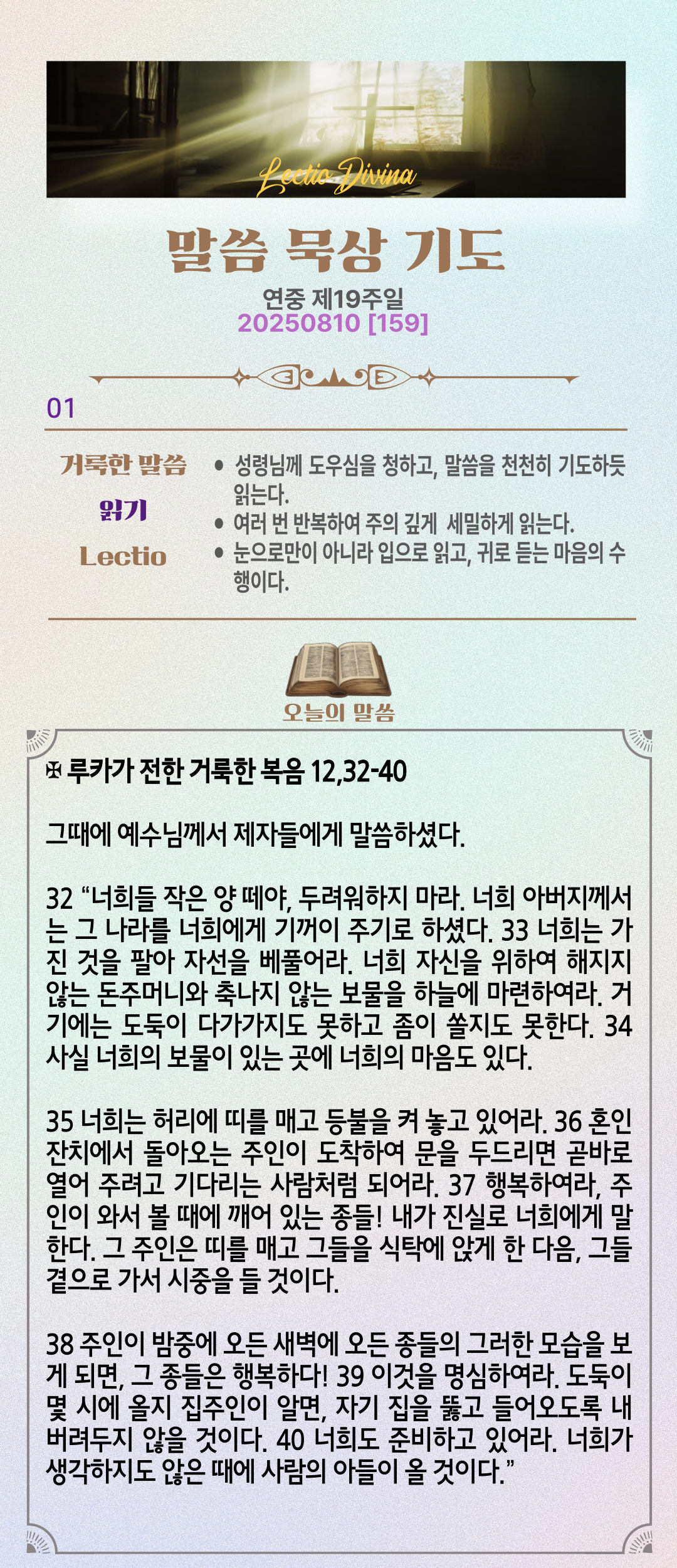말씀묵상기도 LECTIO DIVINA [159] 20250810 연중 제19주일