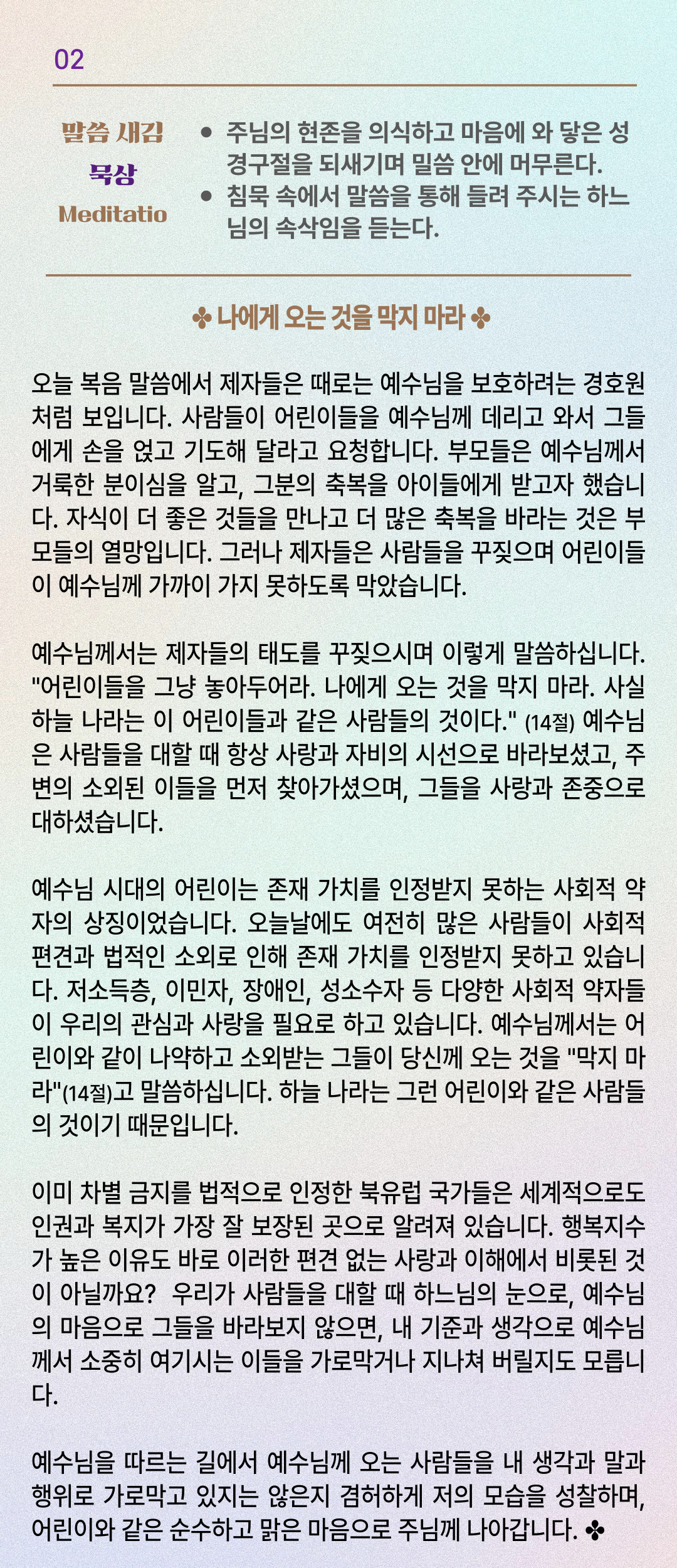 말씀묵상기도 LECTIO DIVINA [165] 20250816 연중 제19주간 토요일