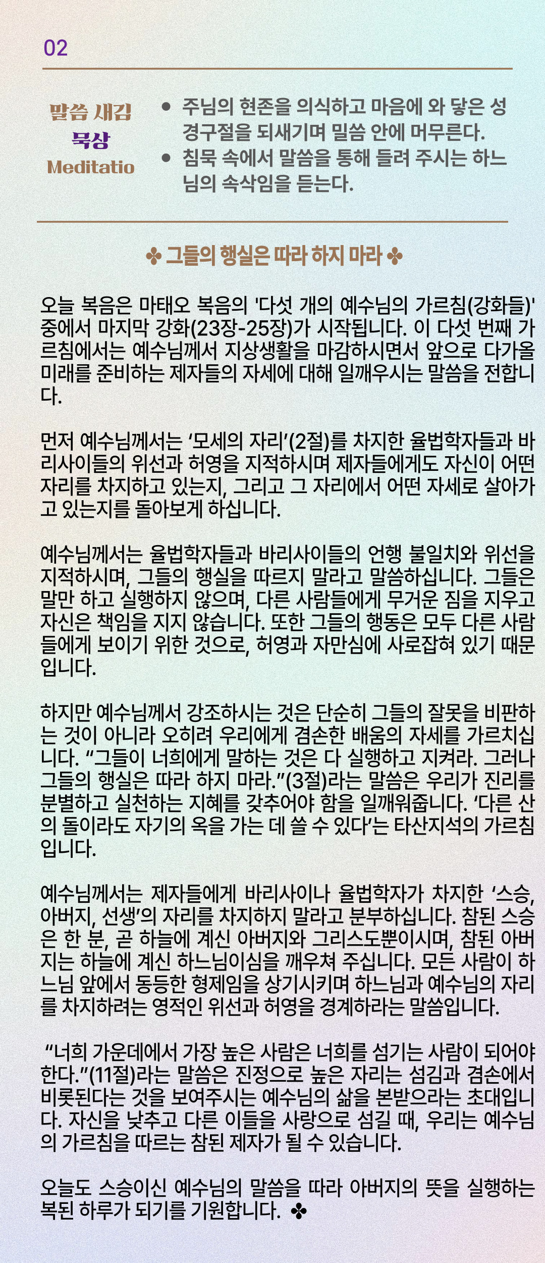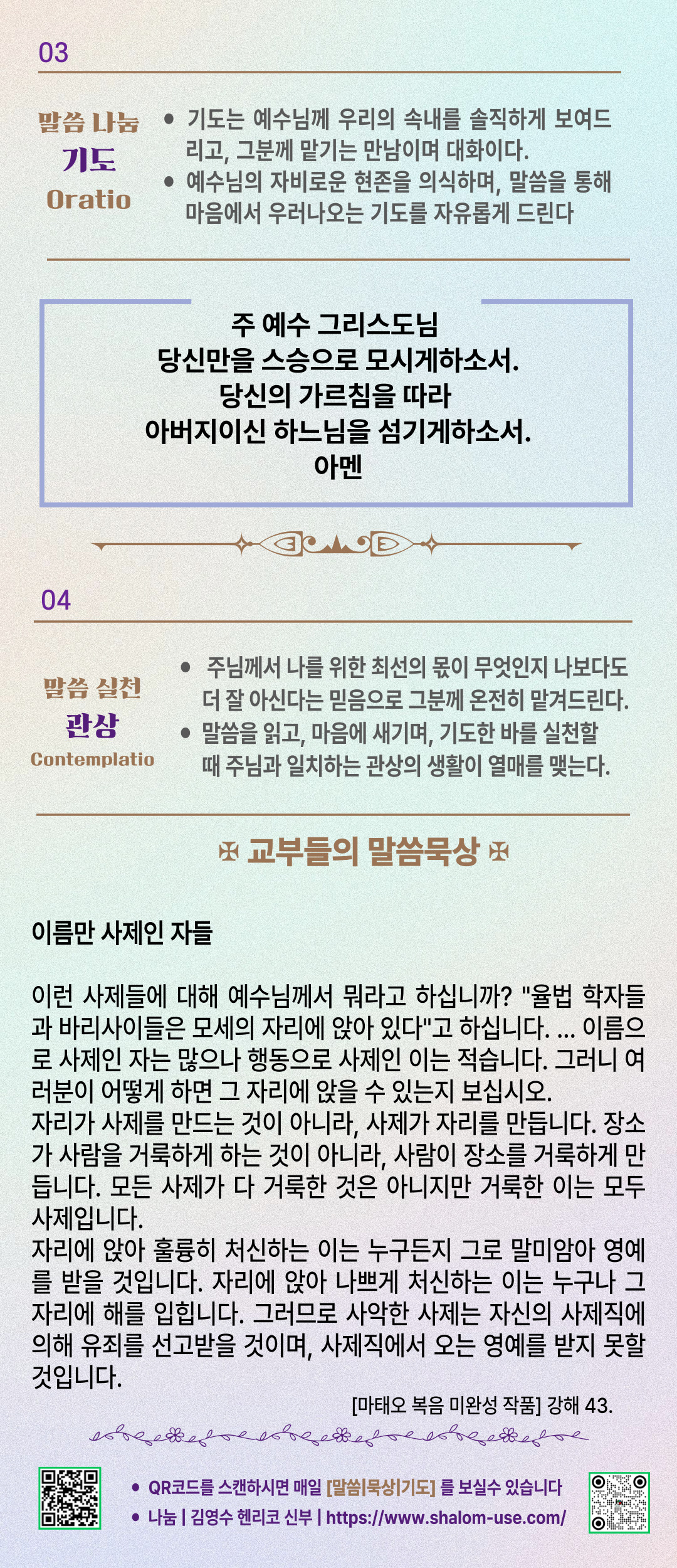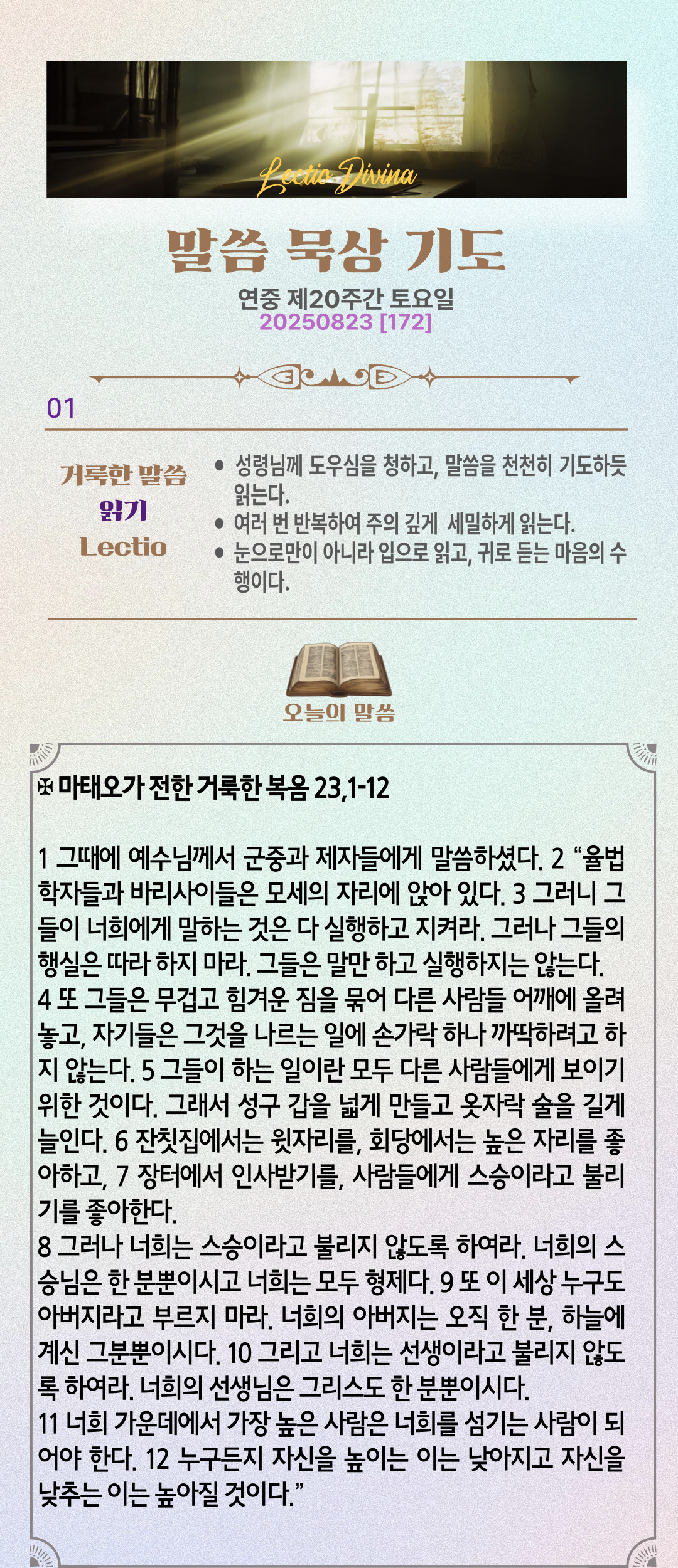 말씀묵상기도 LECTIO DIVINA [172] 20250823 연중 제20주간 토요일
