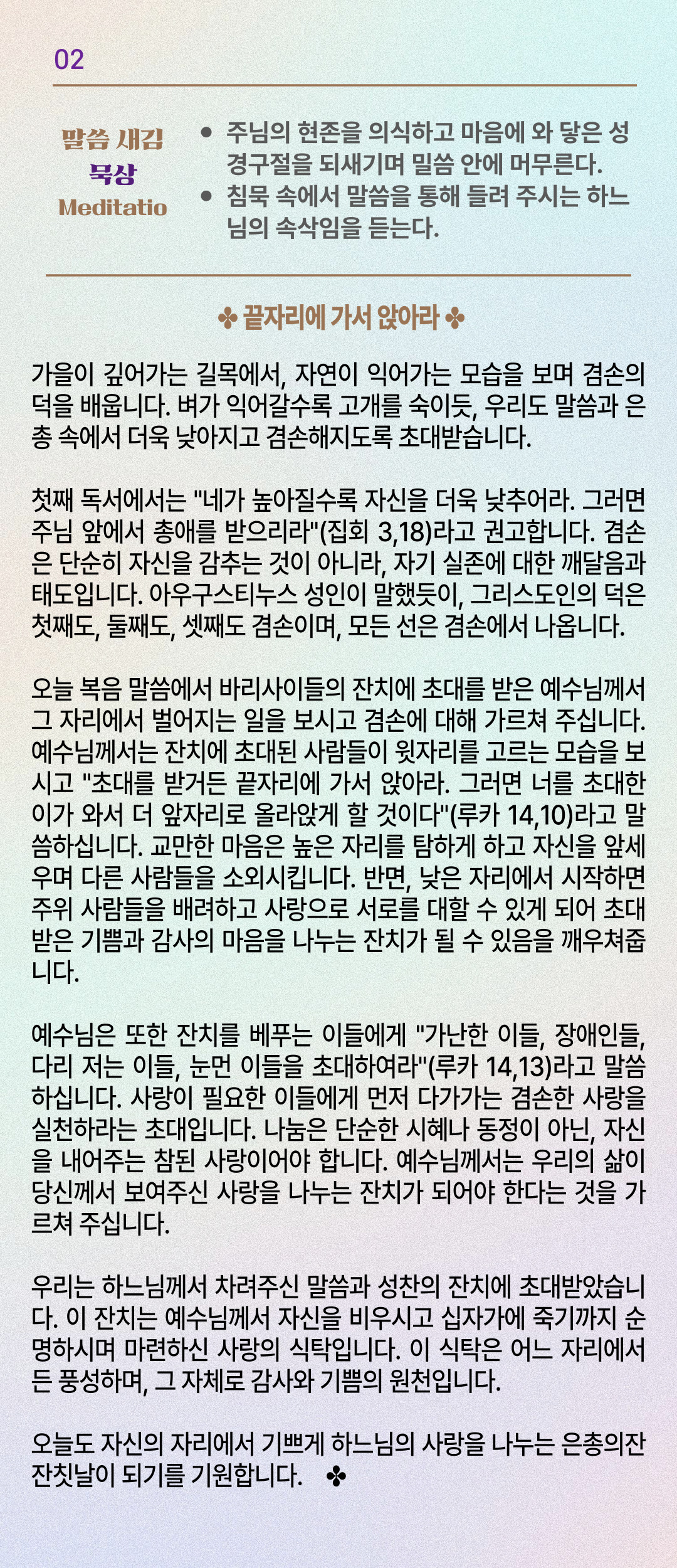 말씀묵상기도 LECTIO DIVINA [180] 20250831 연중 제22주일