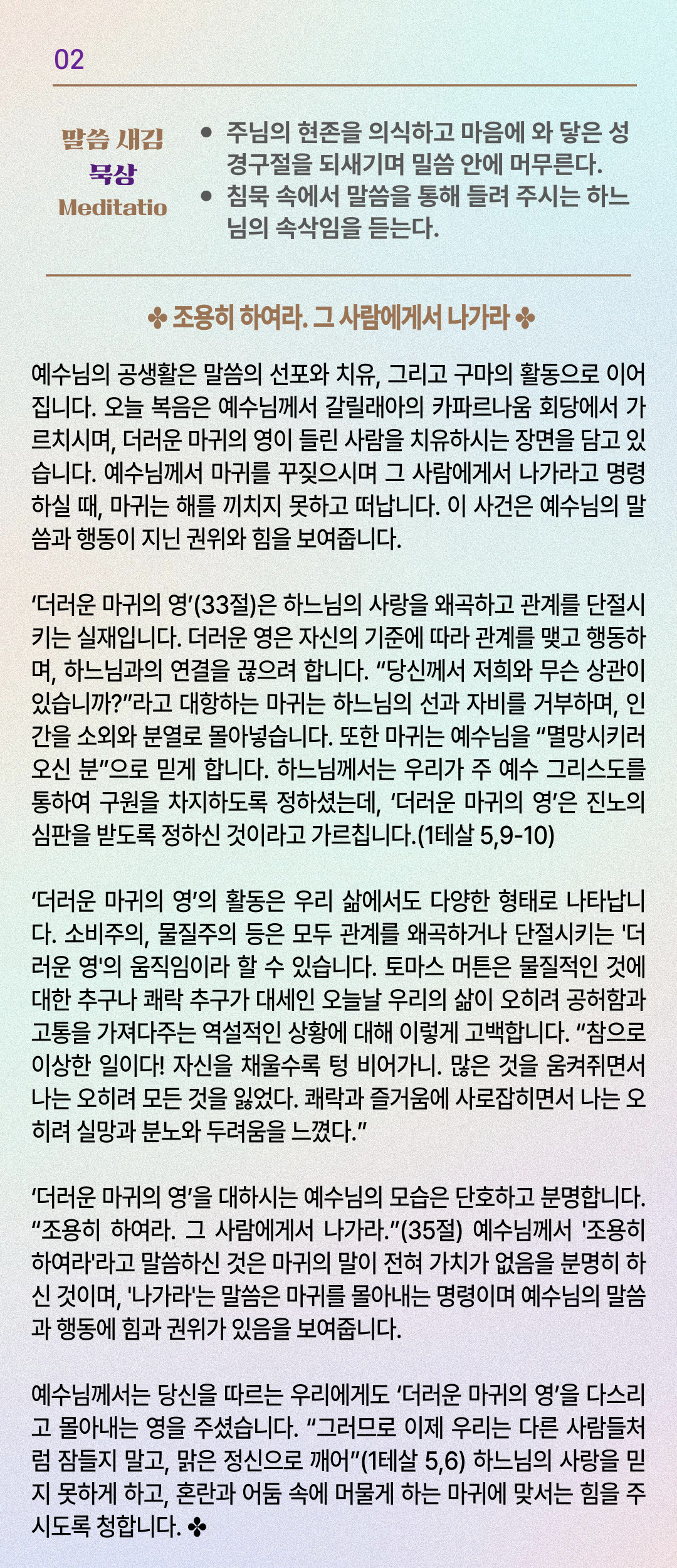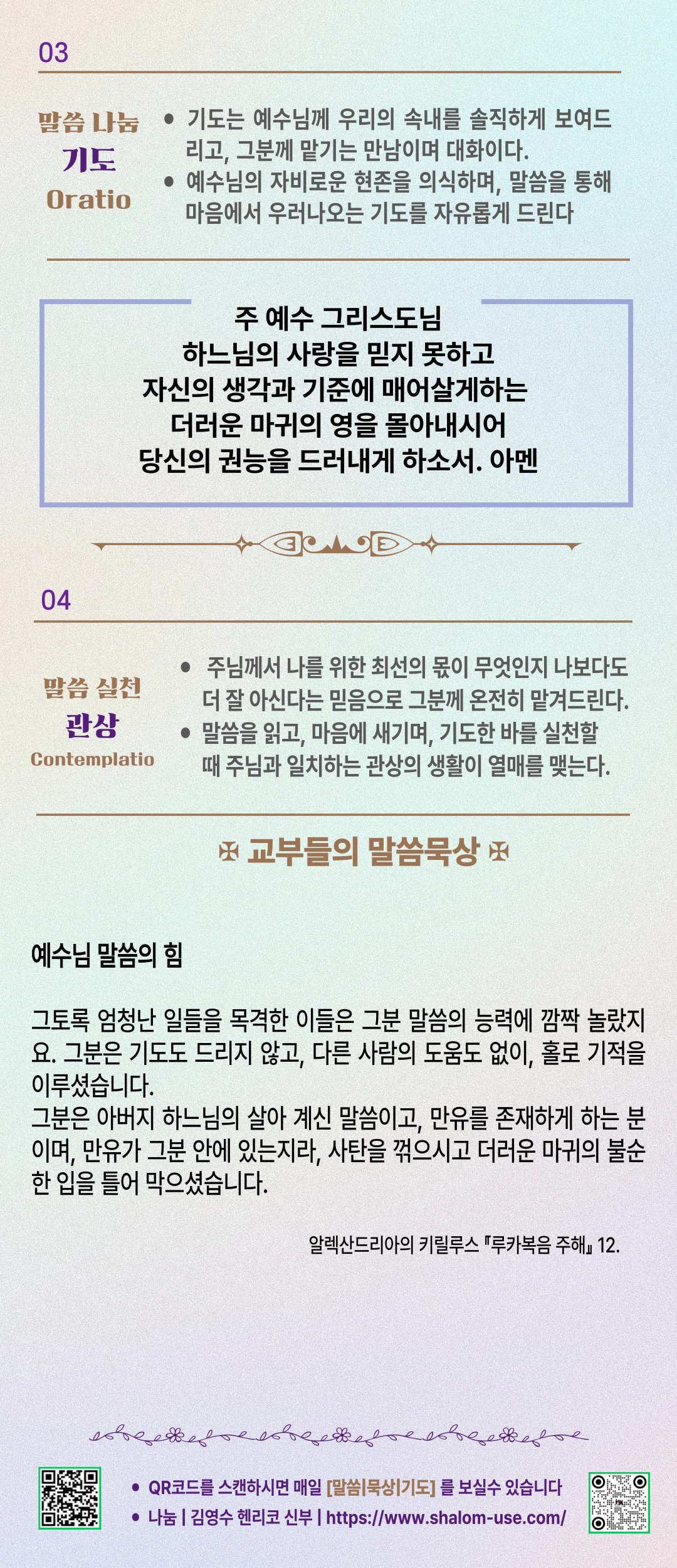말씀묵상기도 LECTIO DIVINA [182] 20250902 연중 제22주간 화요일