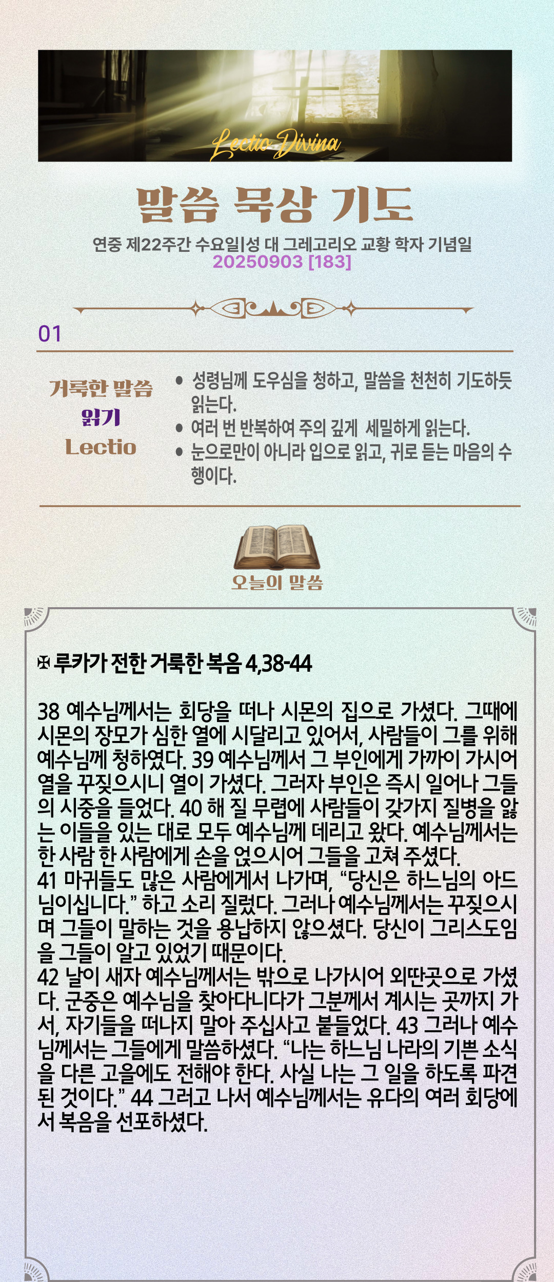 말씀묵상기도 LECTIO DIVINA [183] 20250903 연중 제22주간 수요일|성 그레고리오 교황 학자 기념일