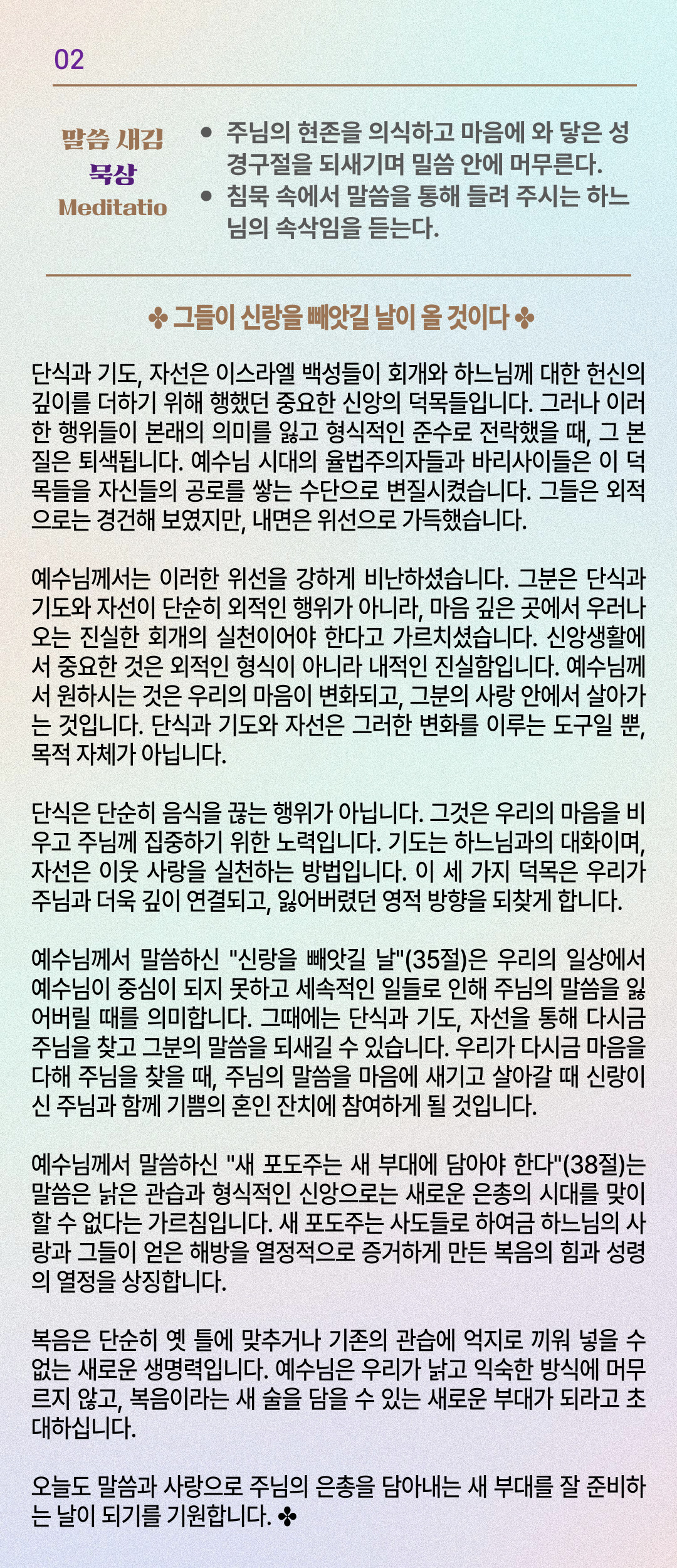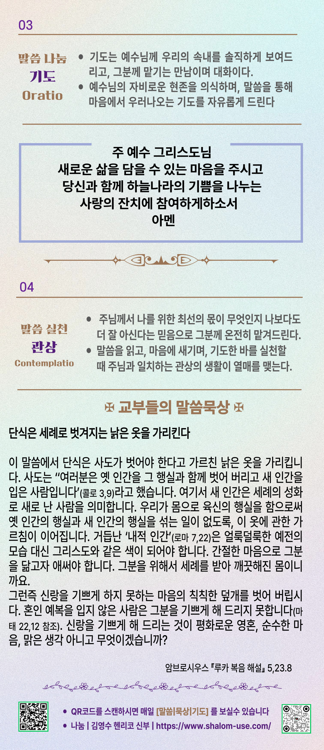 말씀묵상기도 LECTIO DIVINA [185] 20250905 연중 제22주간 금요일