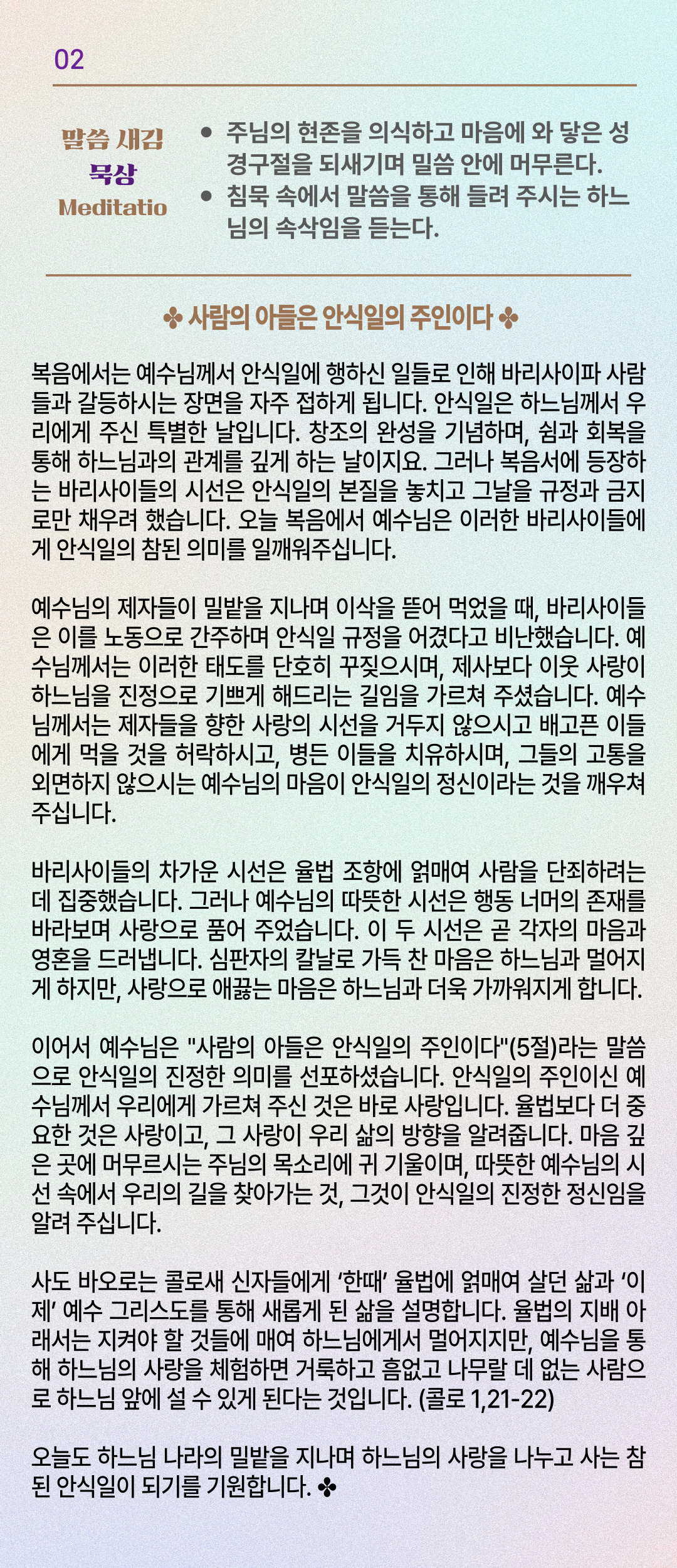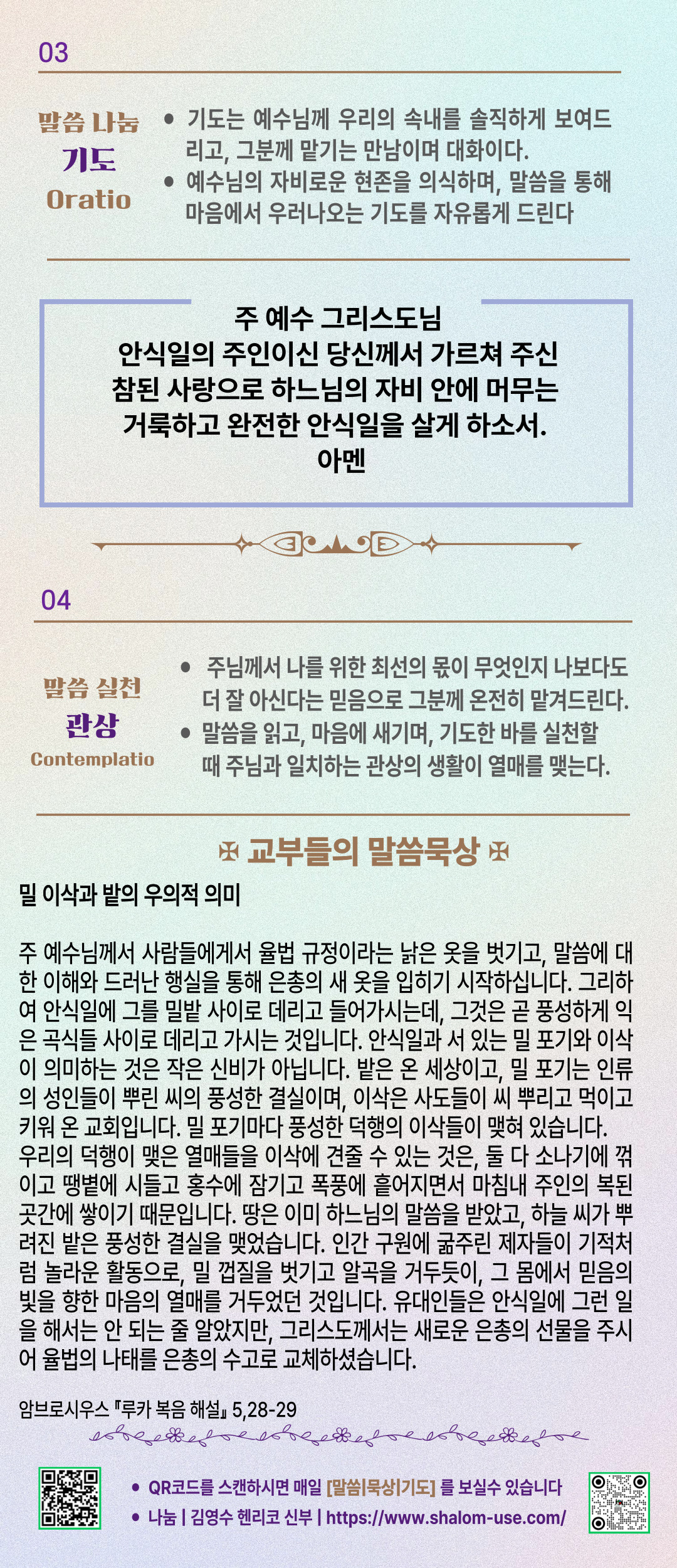 말씀묵상기도 LECTIO DIVINA [186] 연중 제22주간 토요일