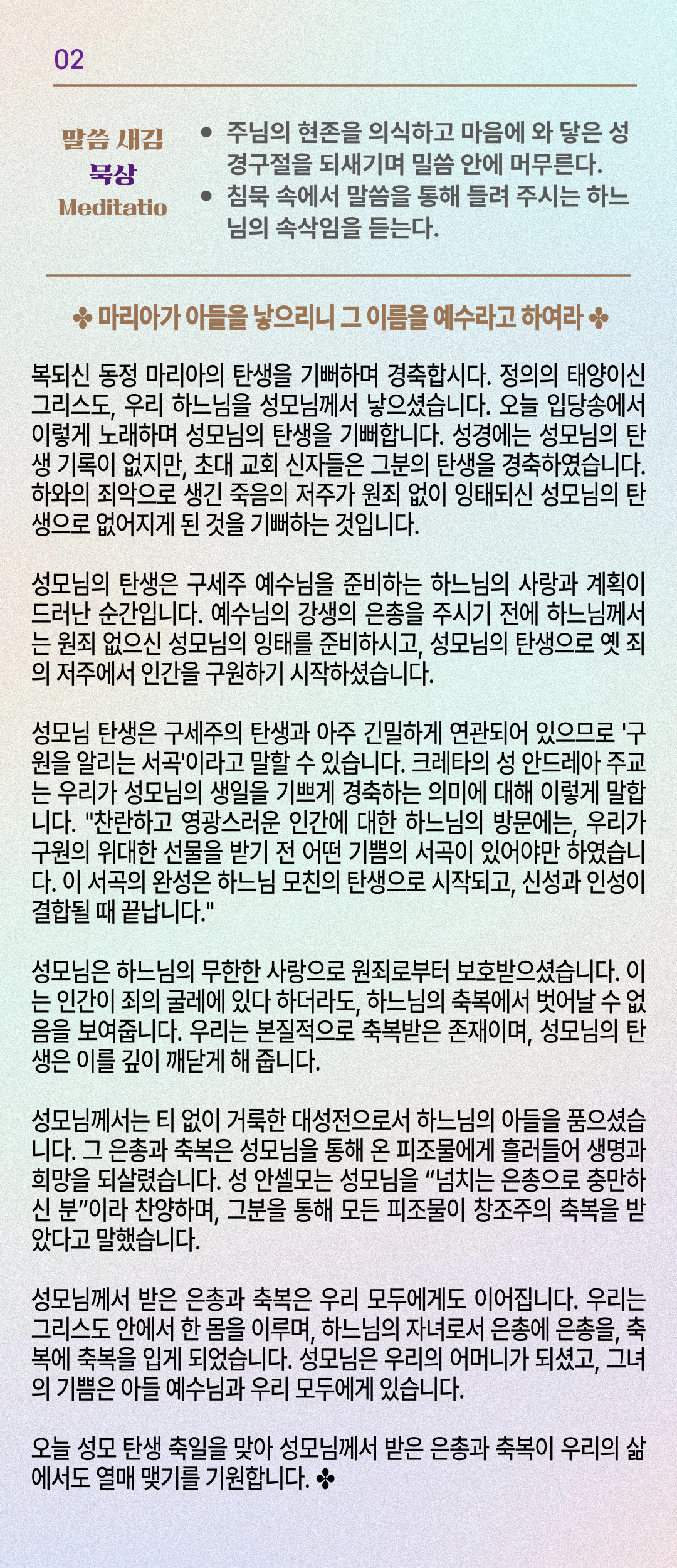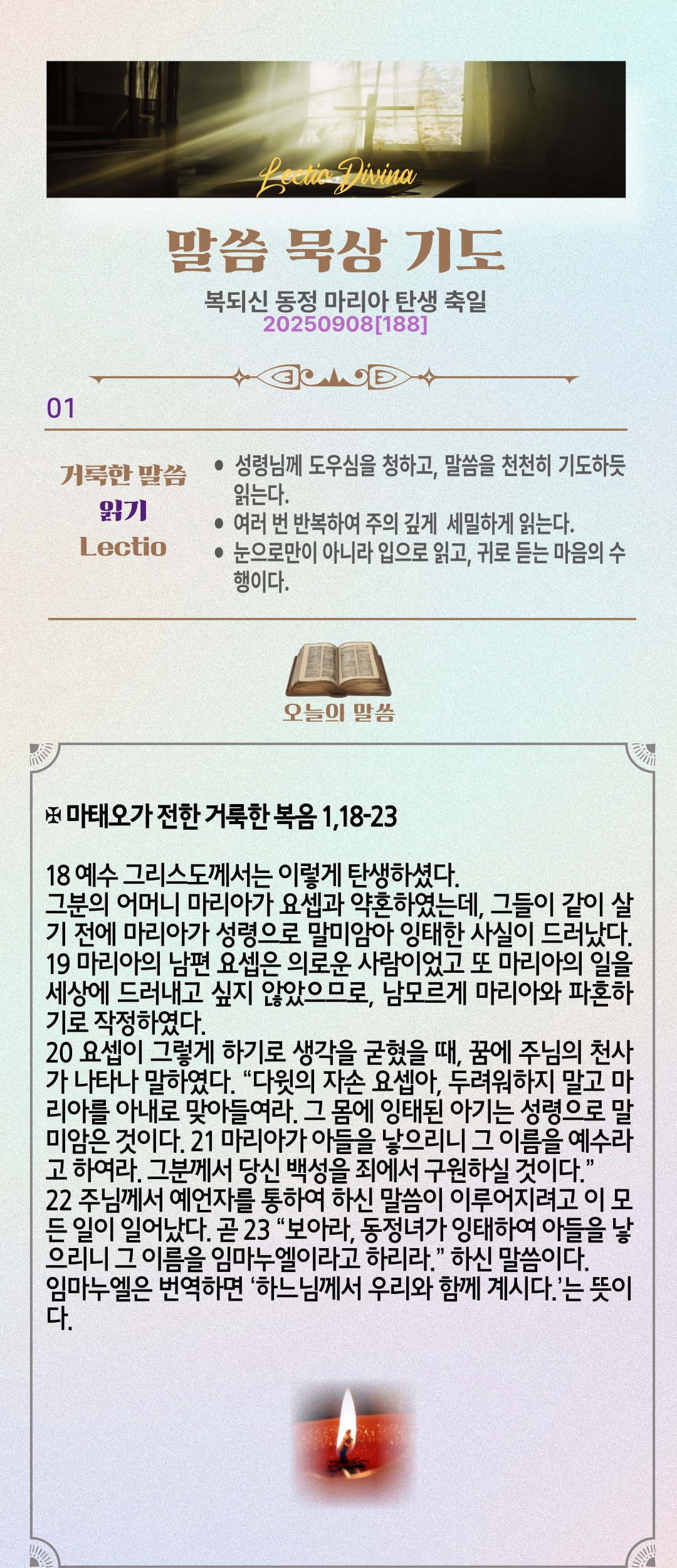 말씀묵상기도 LECTIO DIVINA [188] 20250908 복되신 동정 마리아 탄생 축일