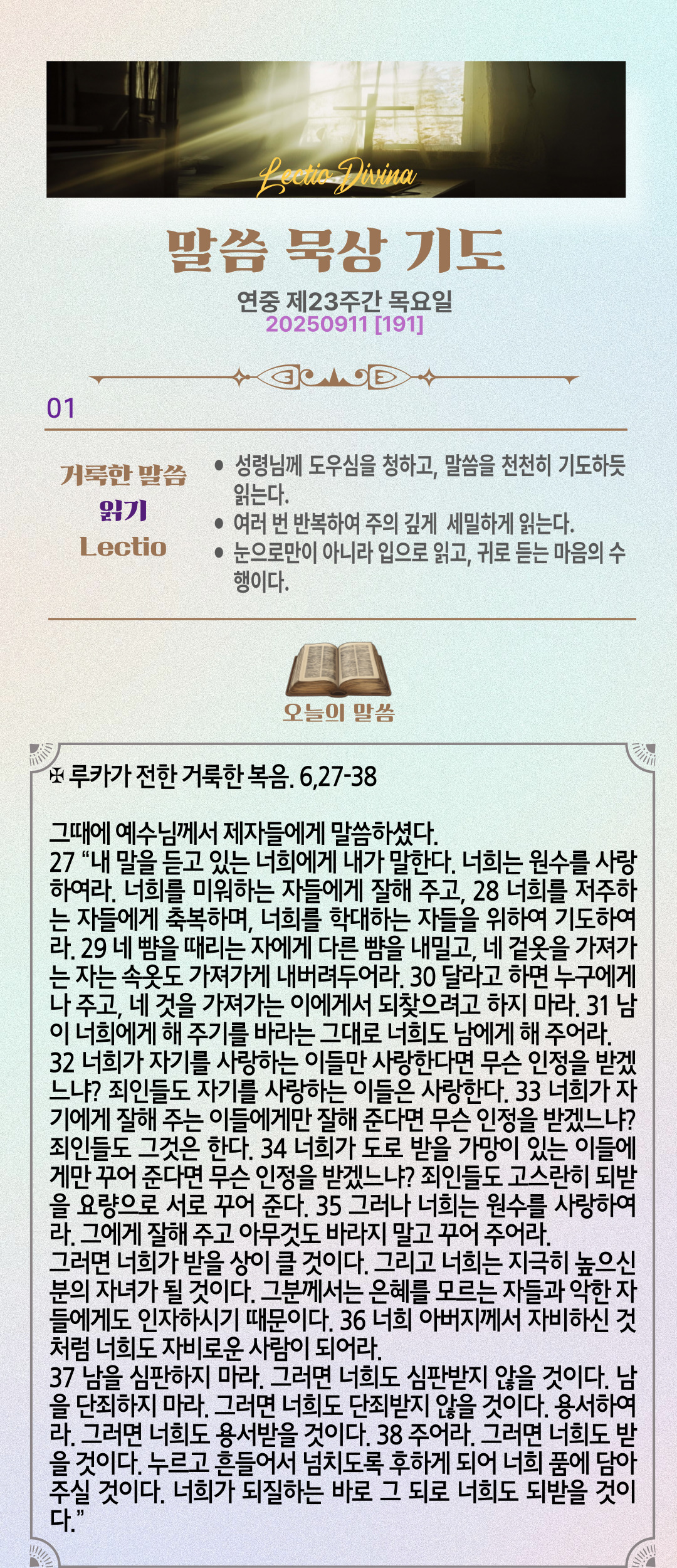 말씀묵상기도 LECTIO DIVINA [191] 20250911 연중 제23주간 목요일