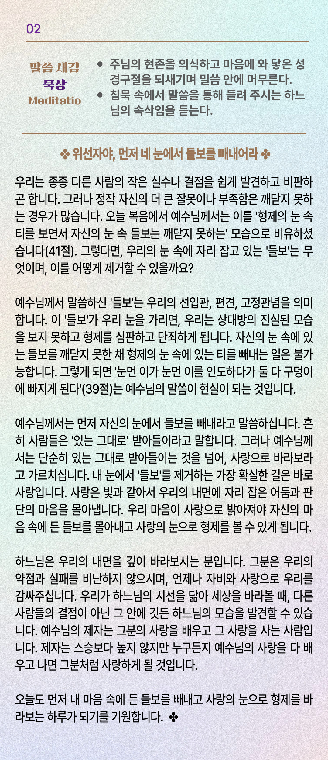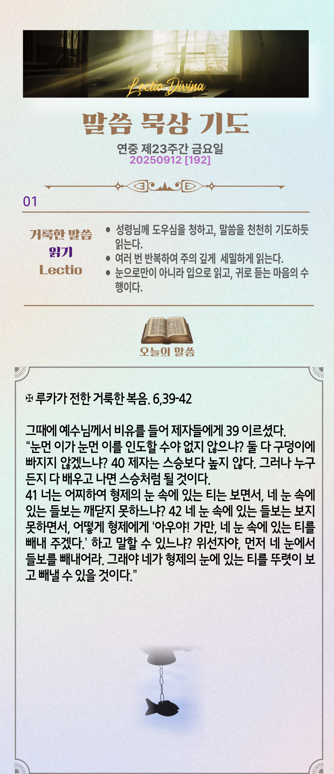 말씀묵상기도 LECTIO DIVINA [192] 20250912 연중 제23주간 금요일