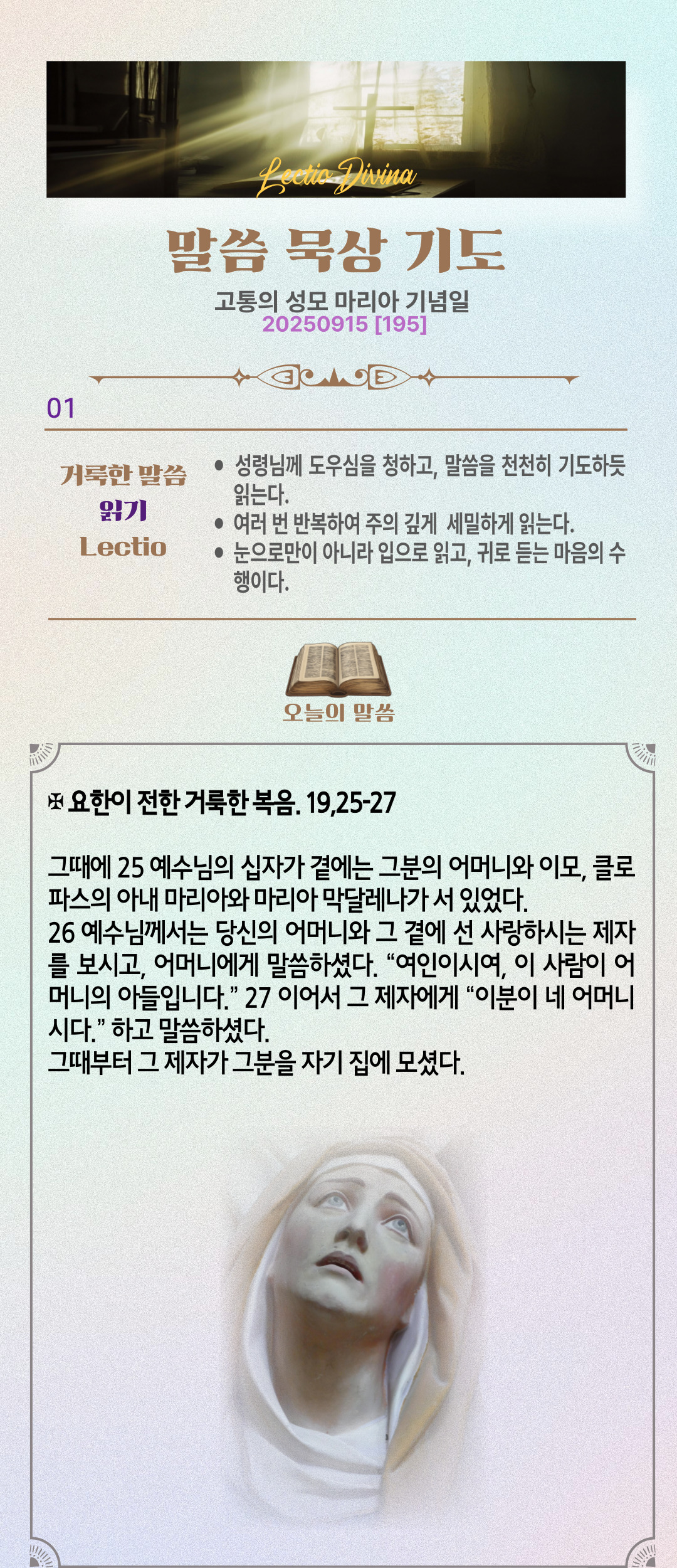 말씀묵상기도 LECTIO DIVINA [195]20250915 고통의 성모 마리아 기념일